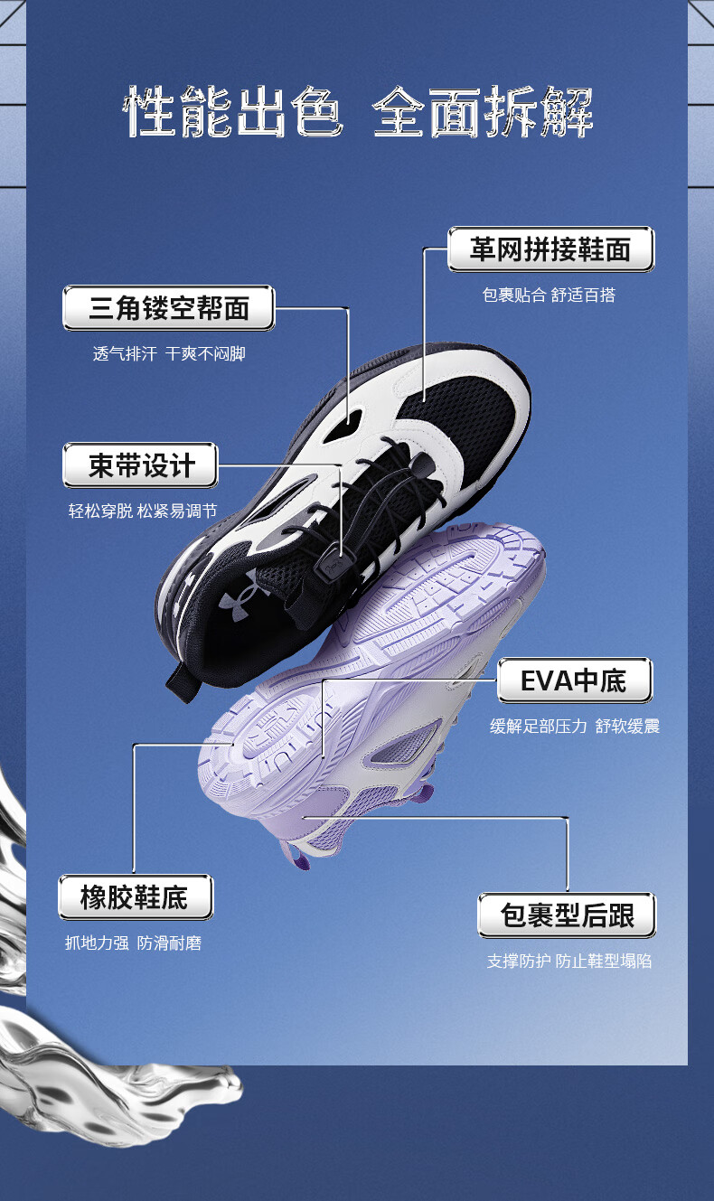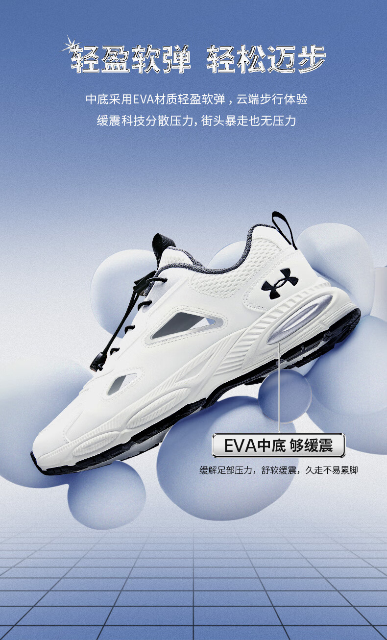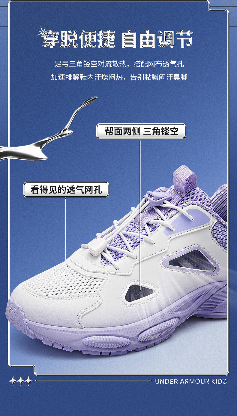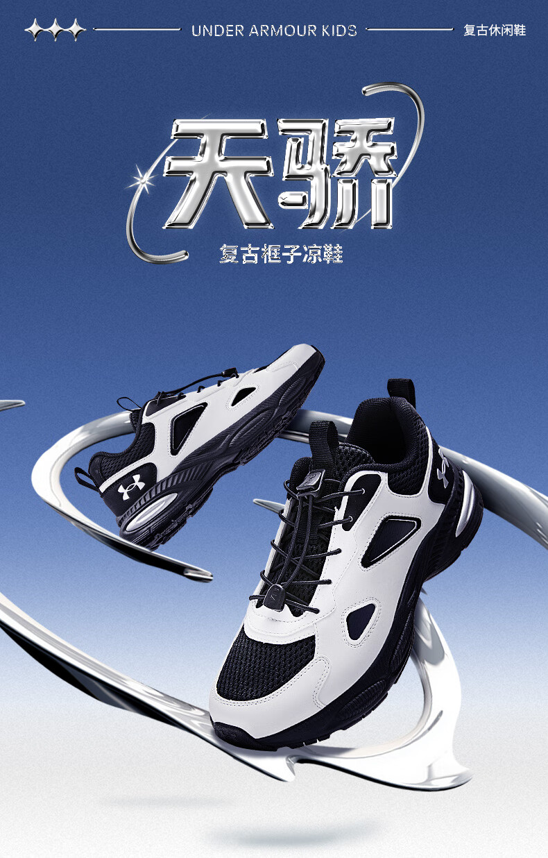 Under Armor Children's Retro Casual Shoes for Boys and Girls Summer Daily Casual Versatile Breathable Casual Sports Sandals 2521677 White 36 (Big Children)