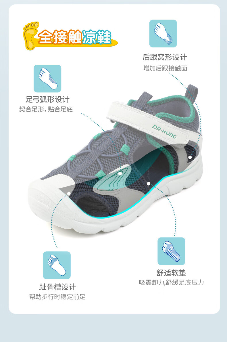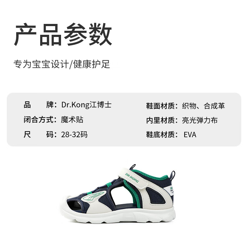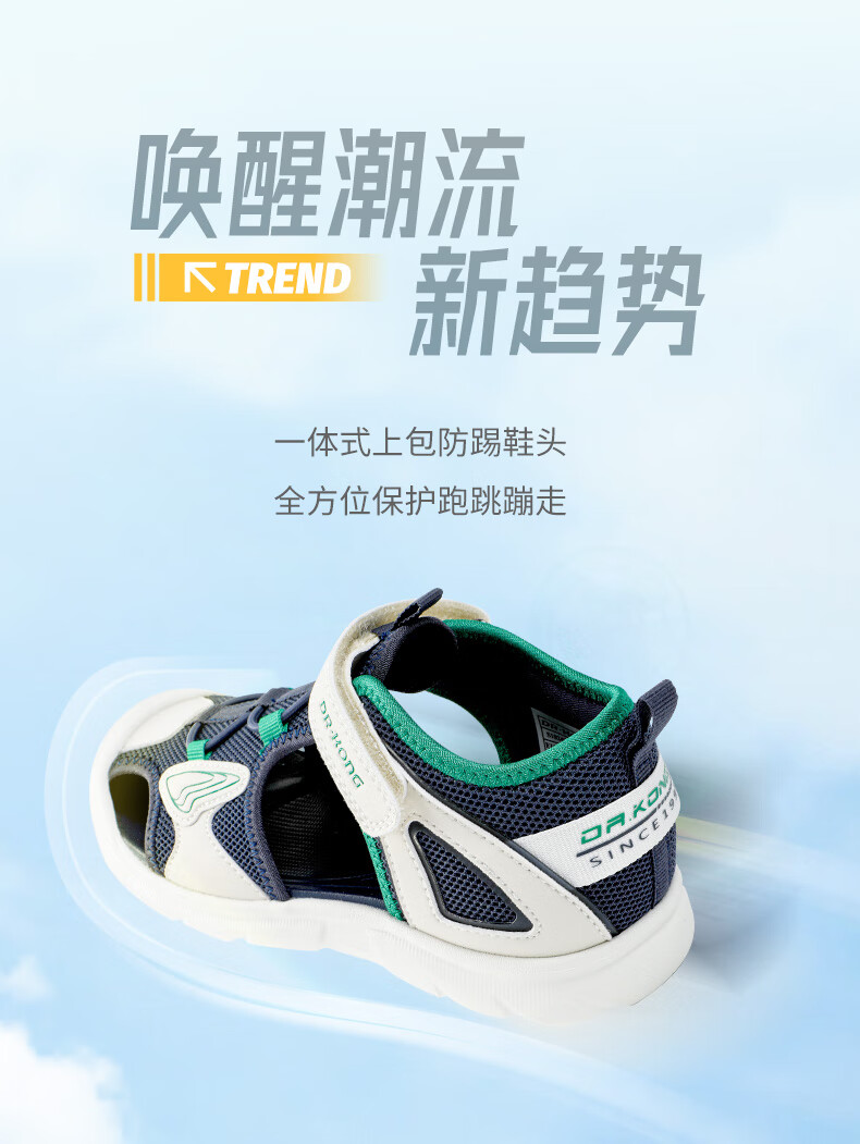 DR KONG summer casual toe-cap sandals for boys and girls, trendy and breathable, comfortable children's sandals for middle and large children, blue/meter 31, foot length approximately 19.4-20.0