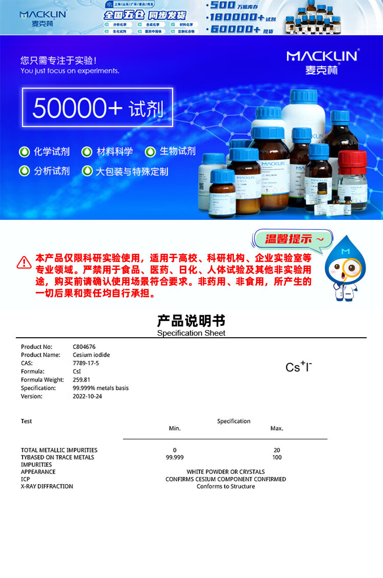 Macklin Cesium Iodide CAS 7789-17-5 C804676-10g