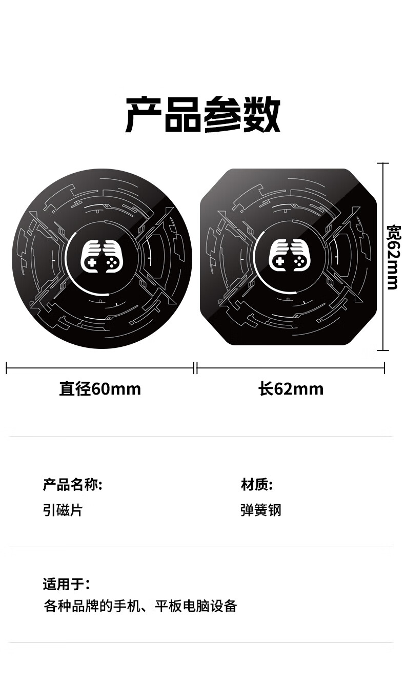 Youmipa Thermal Conductive Magnetic Attractive Plate Radiator Mobile Phone Magnetic Patch Android Apple Tablet iPad Patch Magnetic Patch Mobile Phone Use Diameter 6CM Thickness 0.5 1 Pack