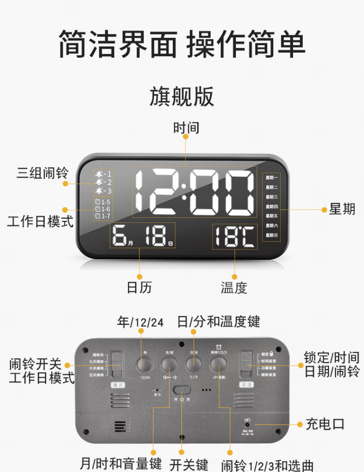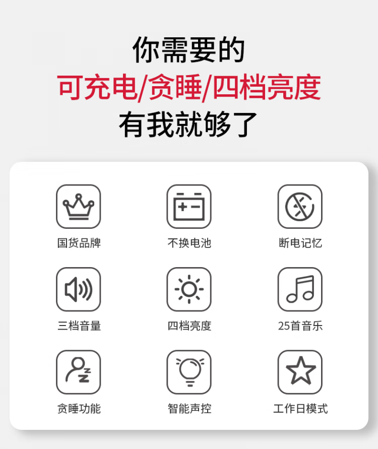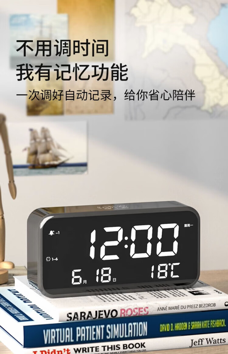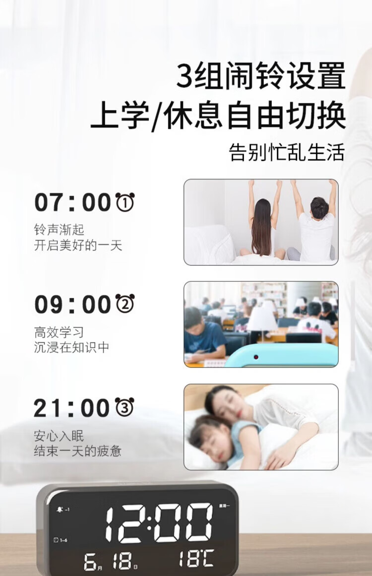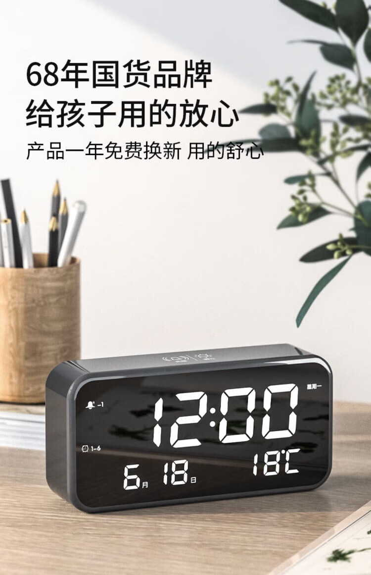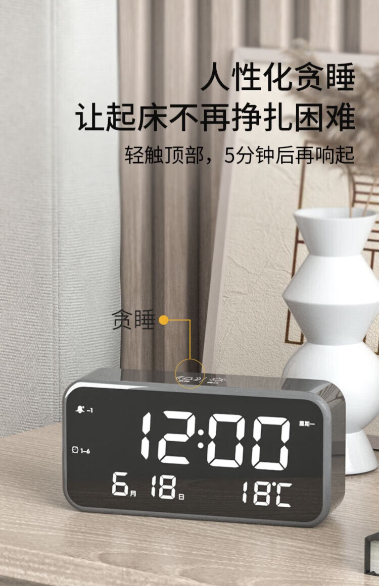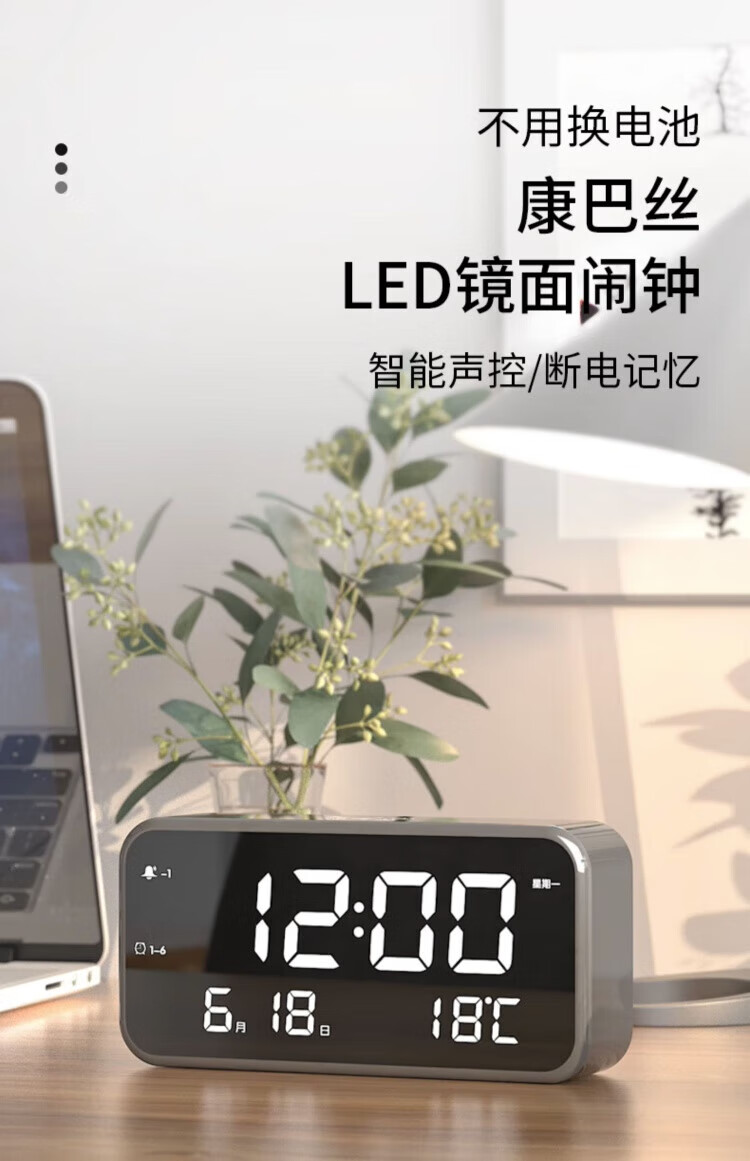 Kangbas Intelligent Silent Electronic Clock Bedside Bedside LED Creative Luminous Desktop Alarm Clock for Students Elegant Silver-Flagship Edition 22cm