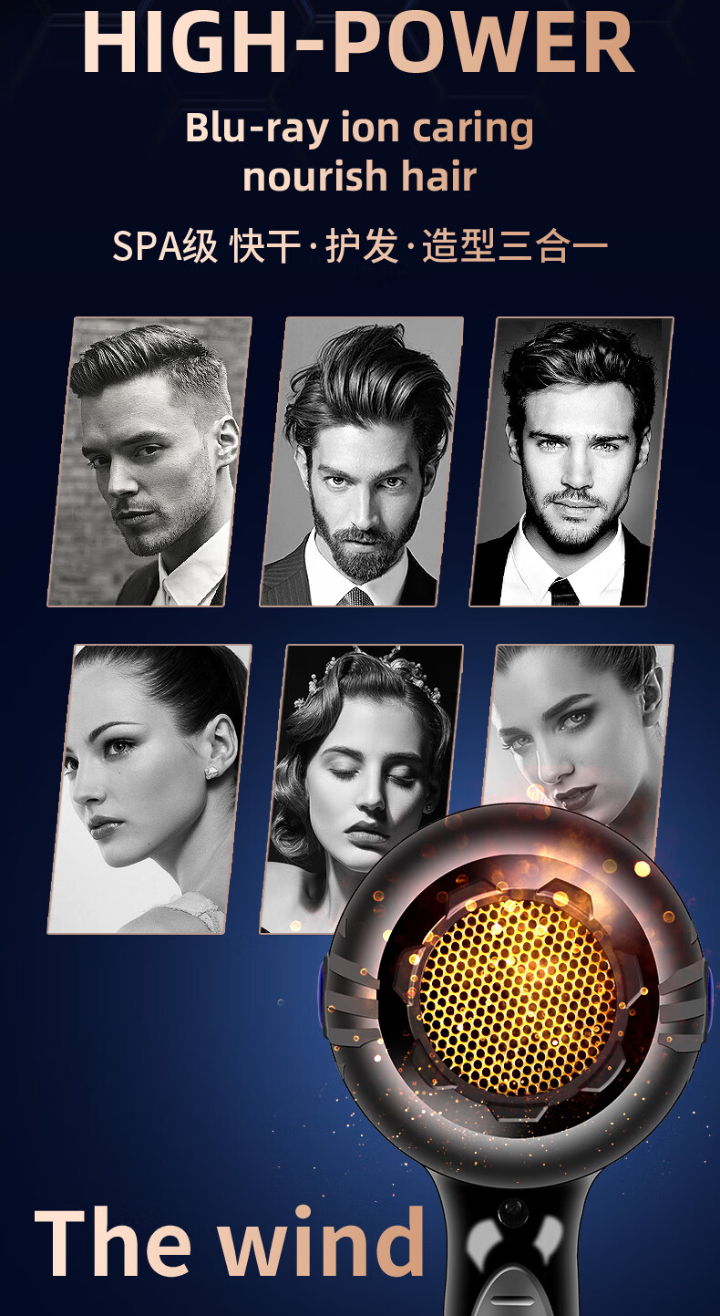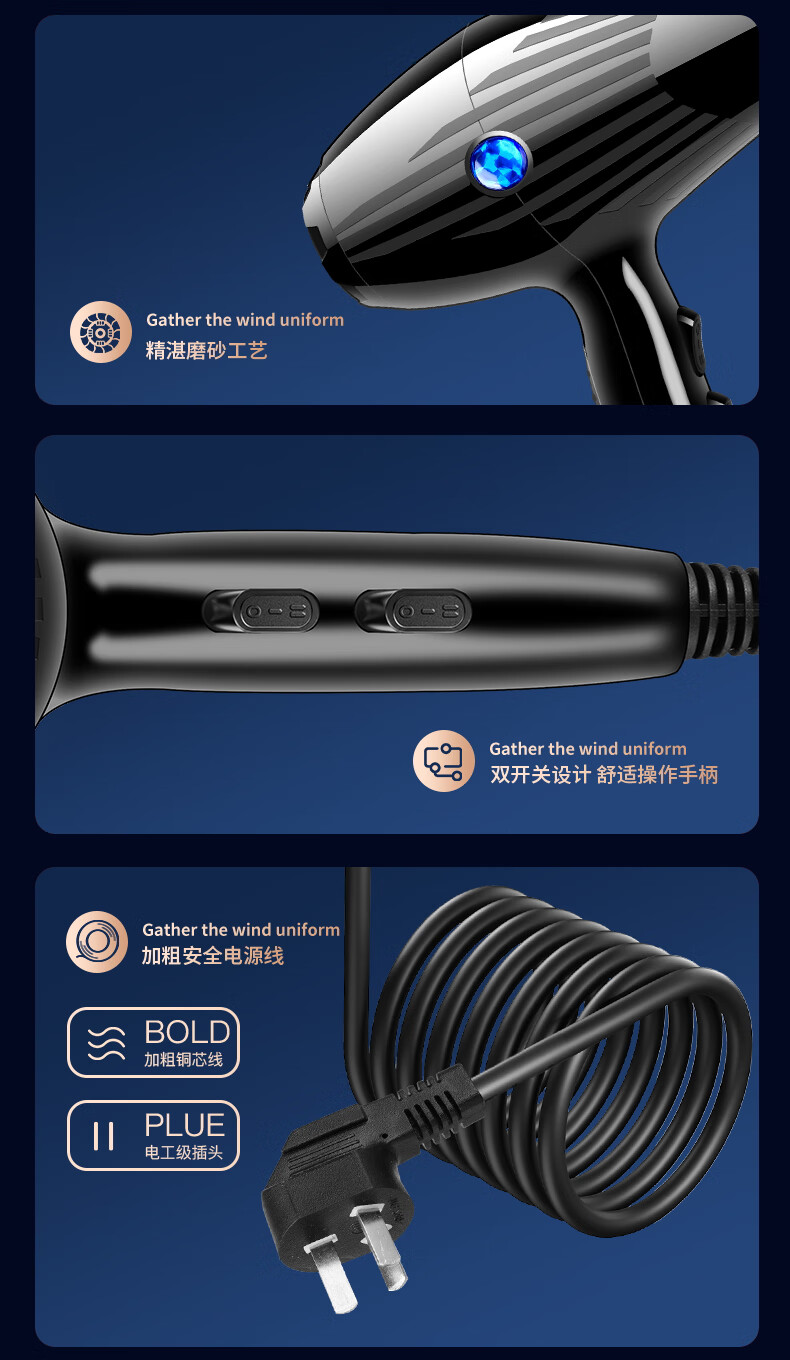High-power hair dryer 5000W hair salon dedicated Liyou store 4000W hair dryer simple blue light 3000W hair dryer black-5000W high wind power-AC movement-free three