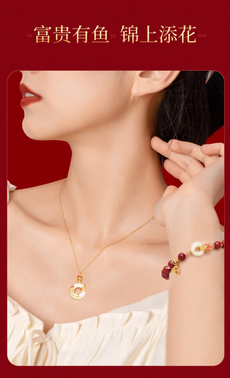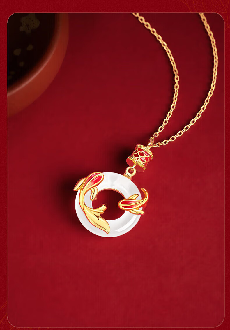 Forbidden City Koi Peace Buckle 999 sterling silver necklace girls jade pendant Valentine's Day birthday gift for girlfriend and wife Koi Peace Buckle Necklace + Certificate Exquisite Gift Box