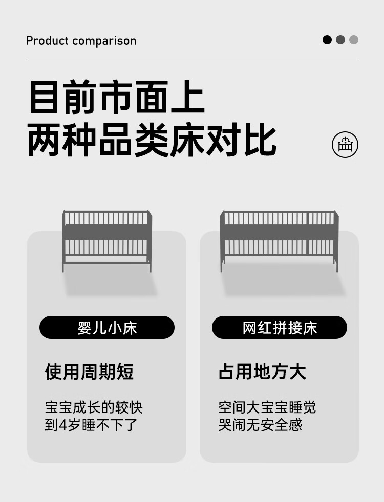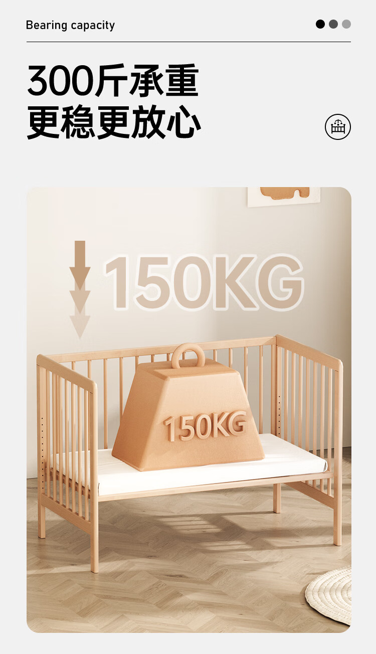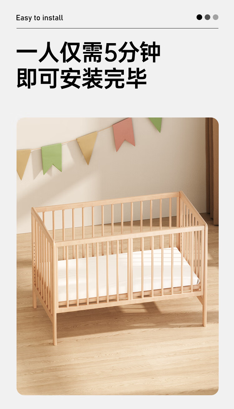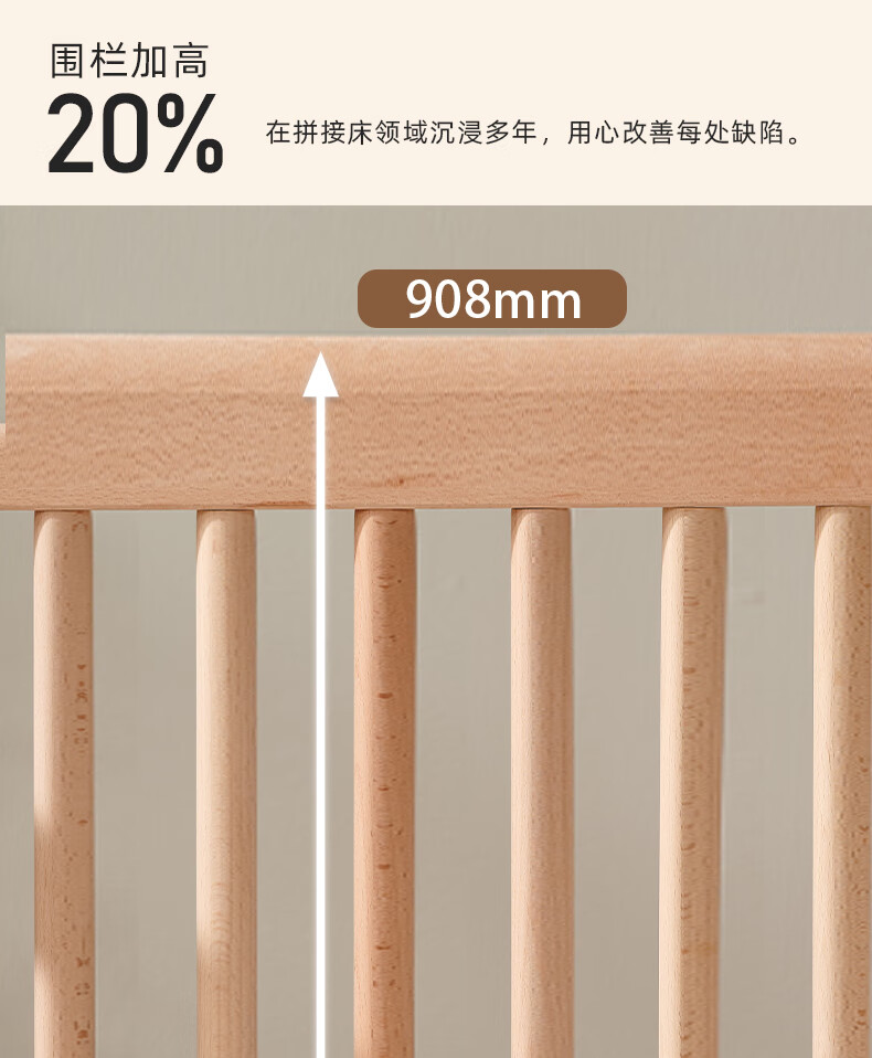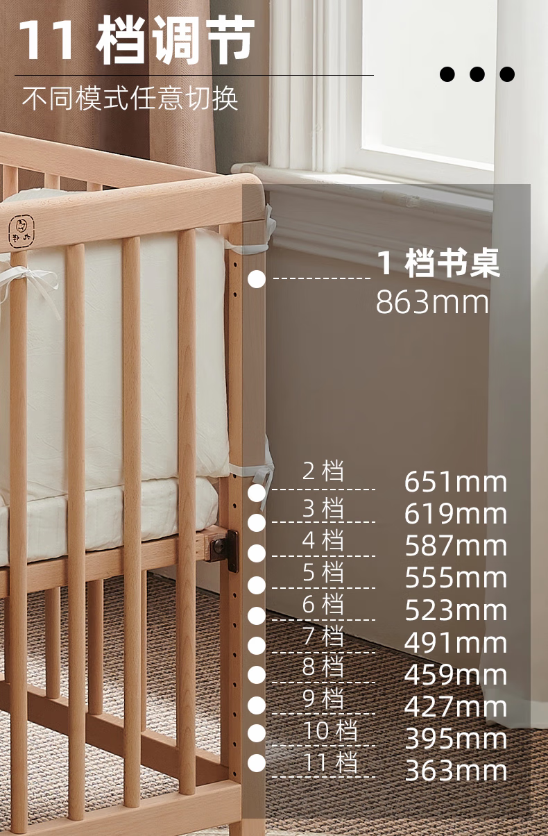 Jiuban Jingqi crib, beech spliced bed, lift bed, multi-functional bedside bed, baby newborn solid wood bed, removable Whale Qi 2.0 paintless model + coconut palm mattress + drawing board