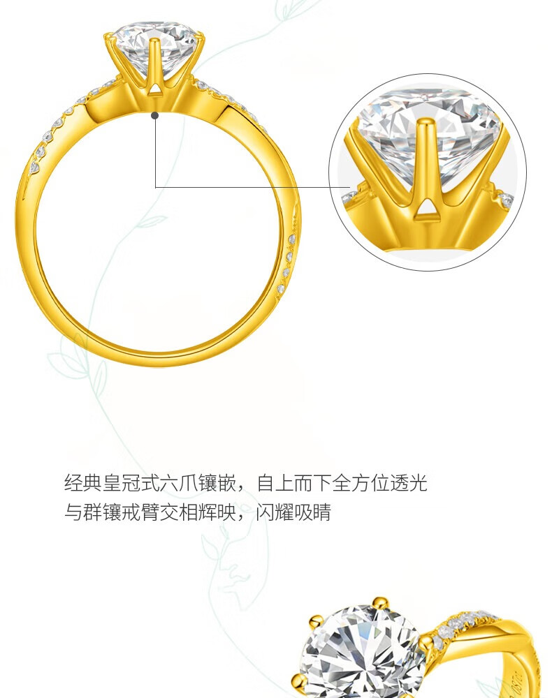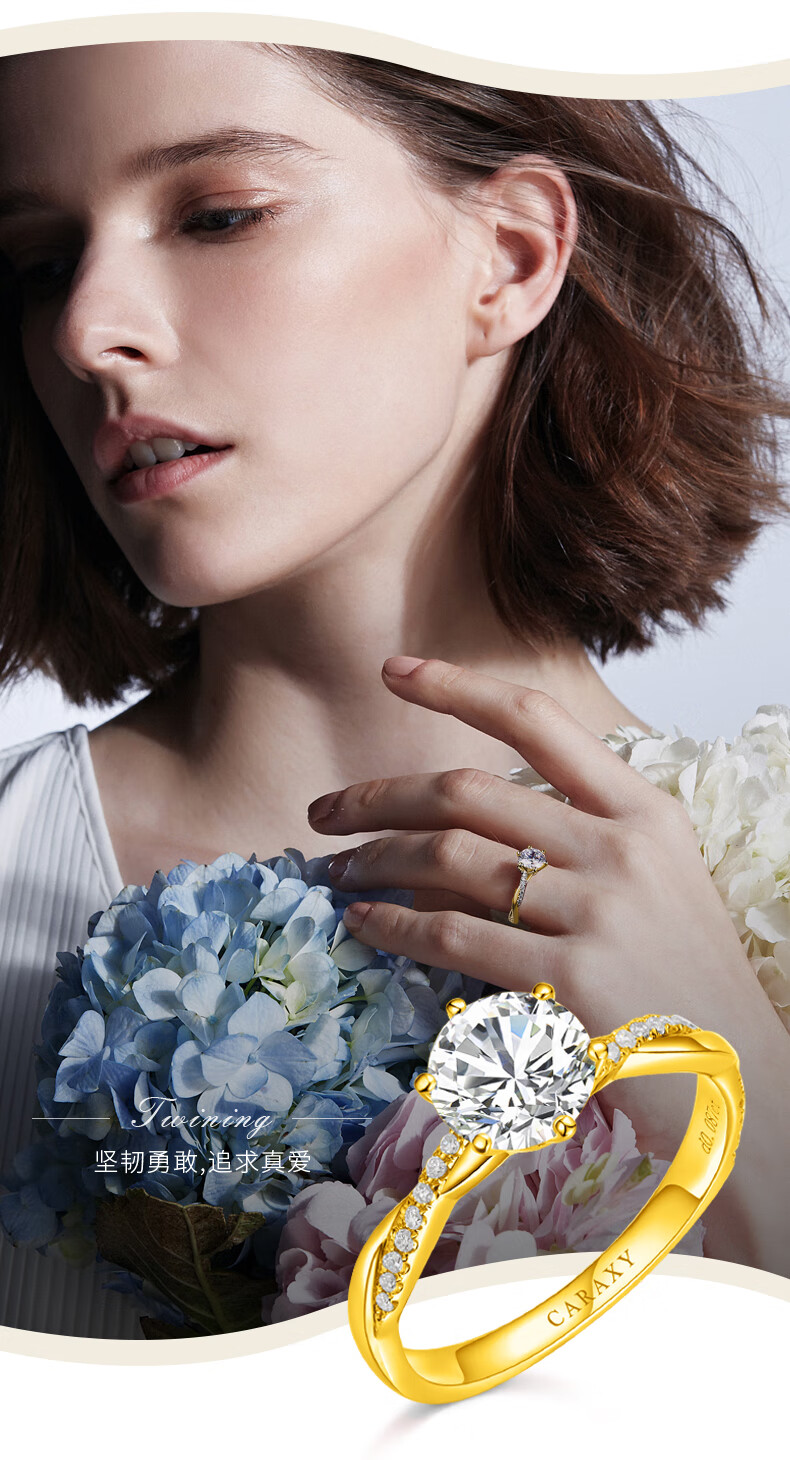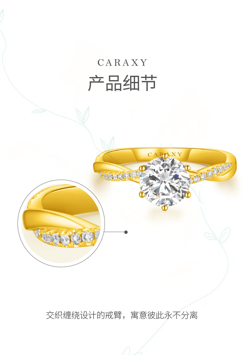 Kailixi pure gold diamond ring wedding engagement ring pure gold vine cultured diamond wedding ring artificial gold diamond ring pure gold set pure culture series 10th anniversary limited edition 50 points/DE/VS/VG+