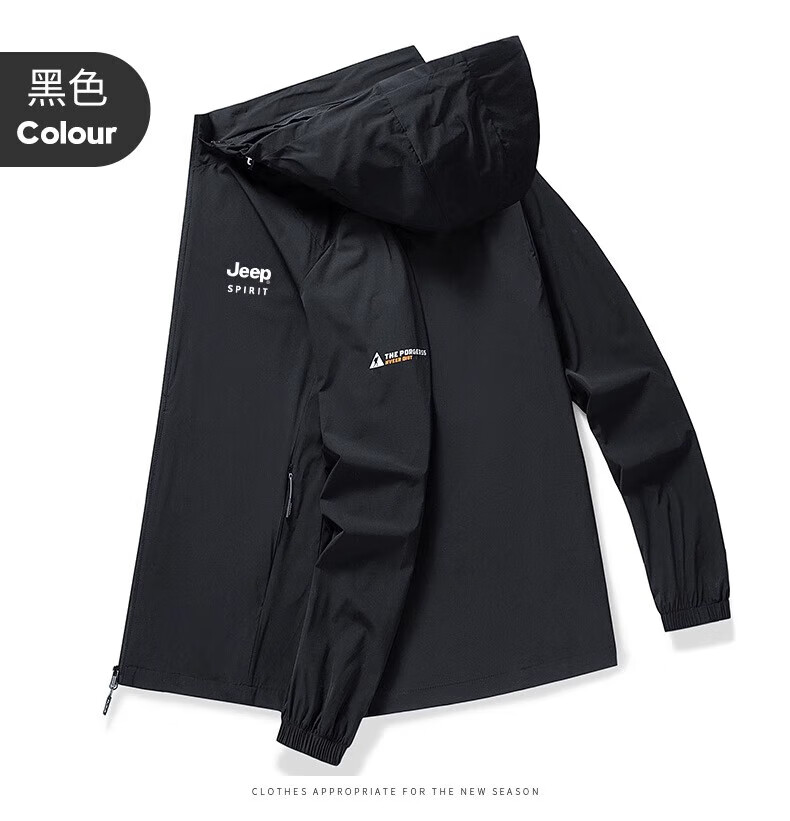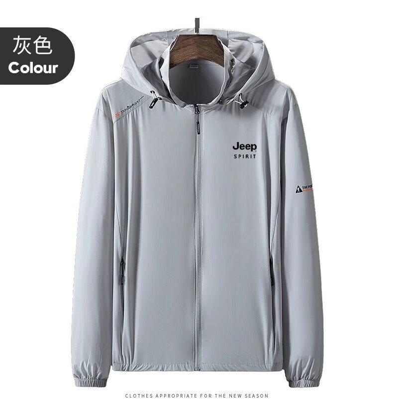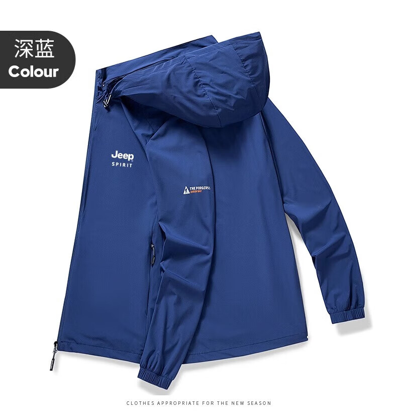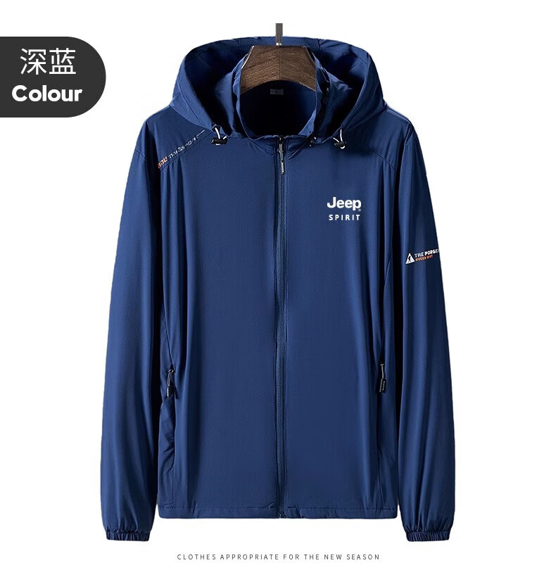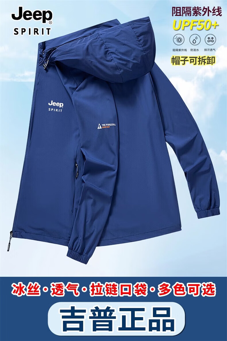 JEEP SPIRIT Jeep Sun Protection Clothing Men's Skin Clothing Summer Breathable Anti-UV Hooded Jacket Ice Silk Fishing Suit Sapphire Blue (B) 3XL