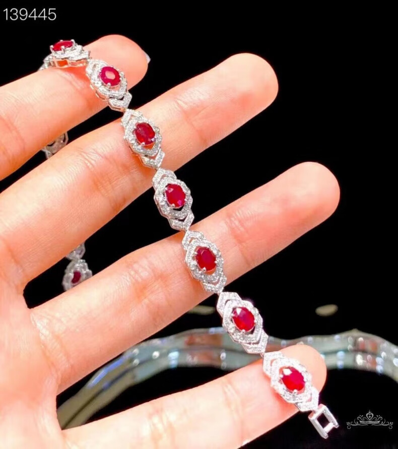 HEEKAIYI Ruby Bracelet for Women Pigeon Blood Red Diamond Luxury Jewelry Chinese Valentine's Day Birthday Gift for Wife Selected 7.2 Carat Mozambique Pigeon Blood Ruby Bracelet