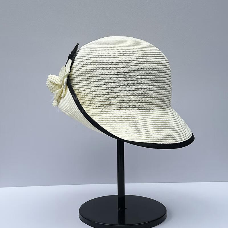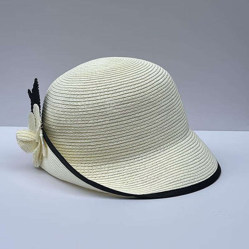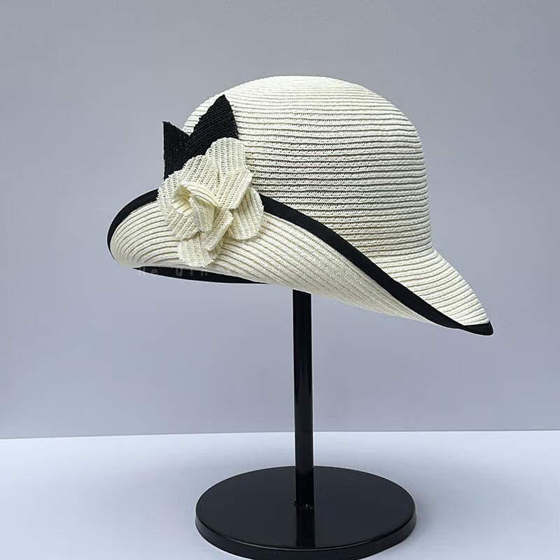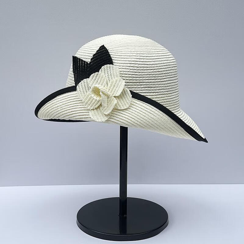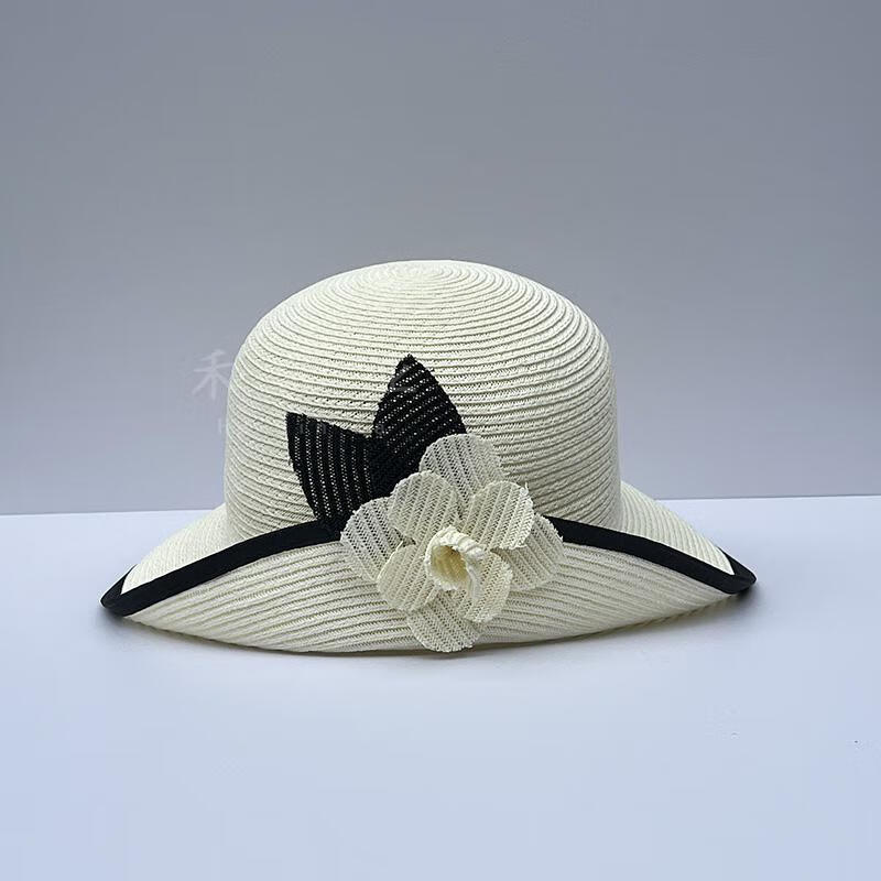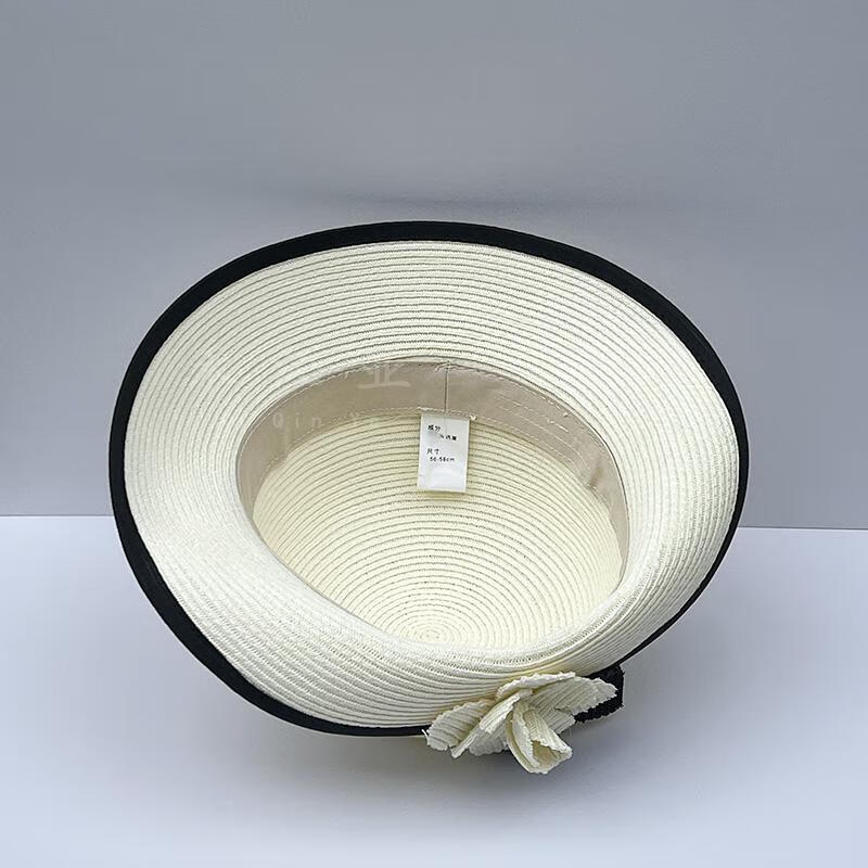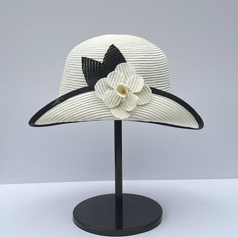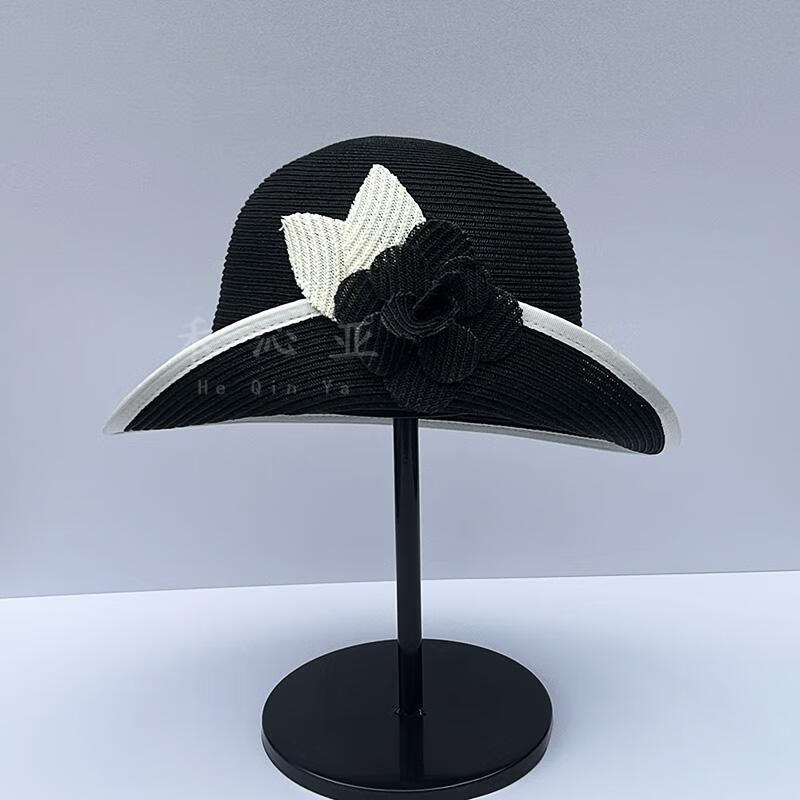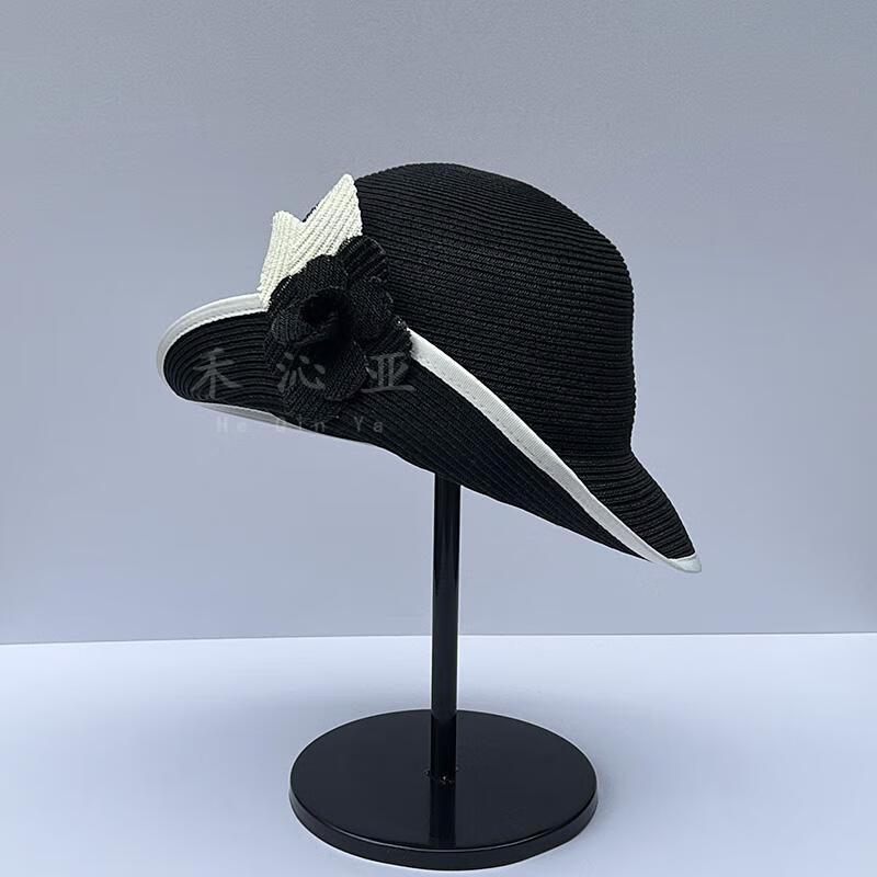 Heqinya Camellia Sun Hat Top Hat Small Fragrant Style Half-trim Straw Hat Summer Anti-snatch Fisherman Hat Rich Color Contrast Edge Black Camellia Half-trim Straw Hat M(56-58cm)