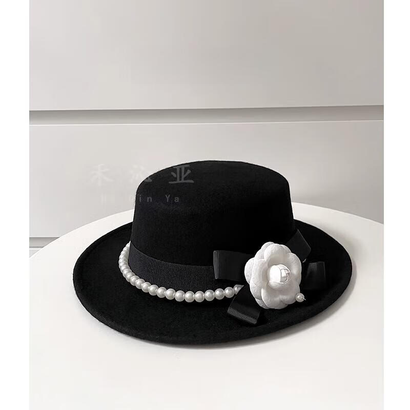 Heqinya camellia sun hat top hat British French elegant pearl edge hat photo studio enlarged brim hat black adjustable