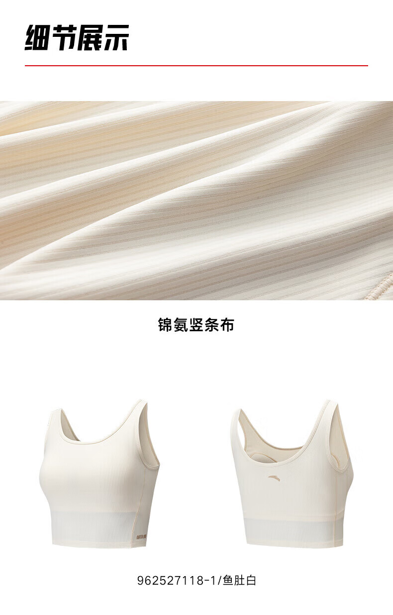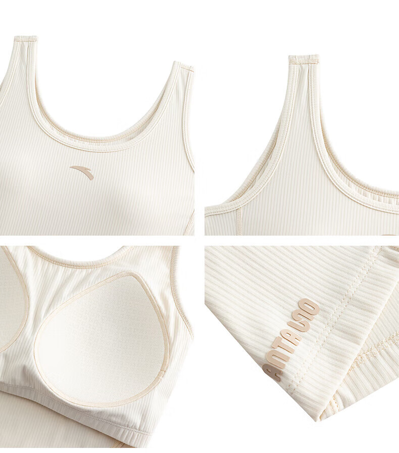 ANTA Ice Skin Antibacterial Sports Vest Women's Autumn and Winter New Soft Breathable Pilates Yoga BRA Wearable Underwear Fish Belly White-1 2XL (Female 180)