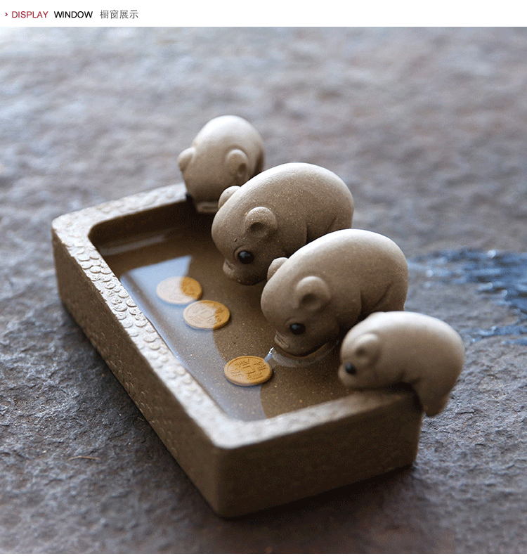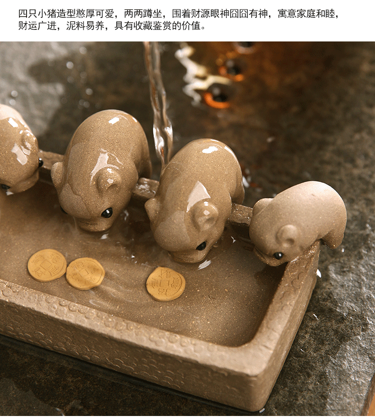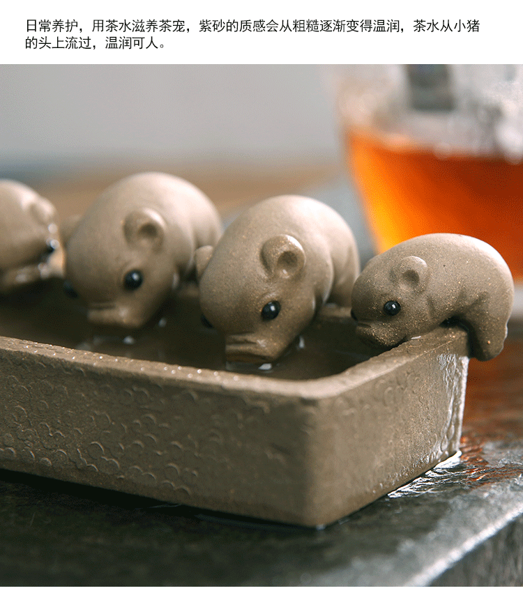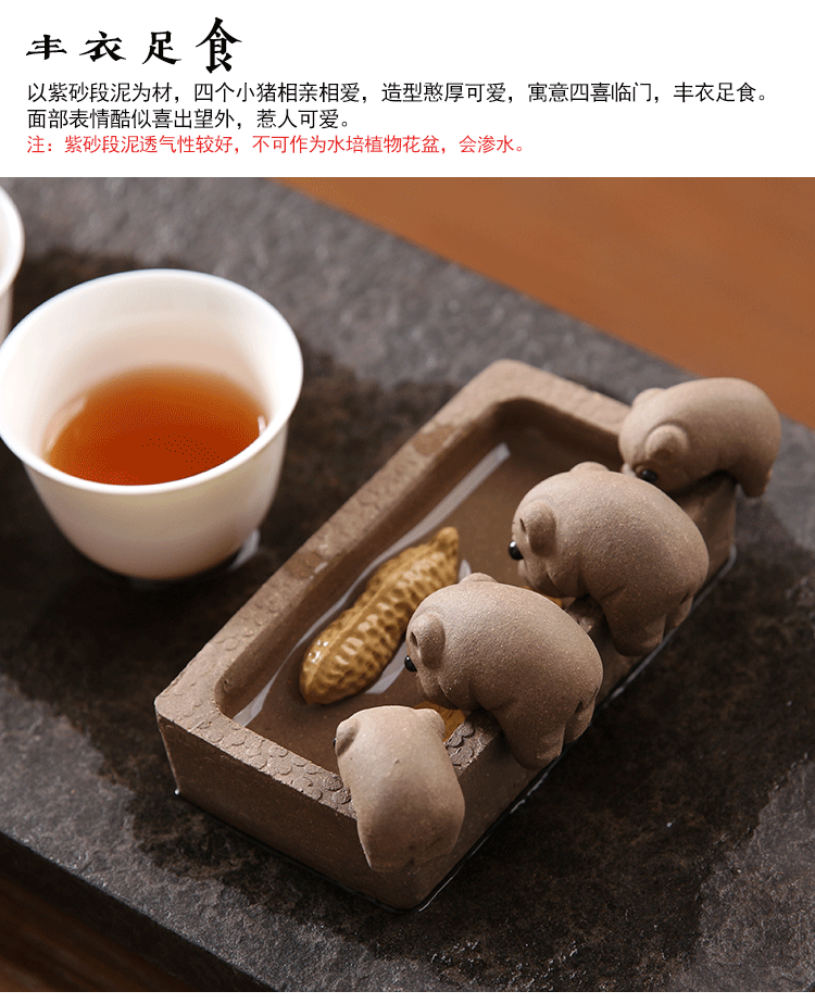 Meikejie purple sand four piglets drink water, mud, have enough food and clothing, Yixing tea play tea pet ornaments tea set accessories double happiness four piglets