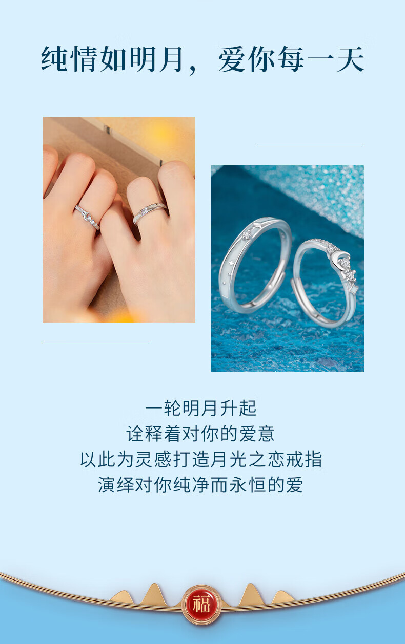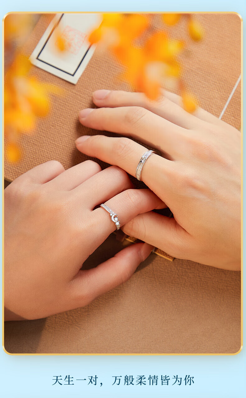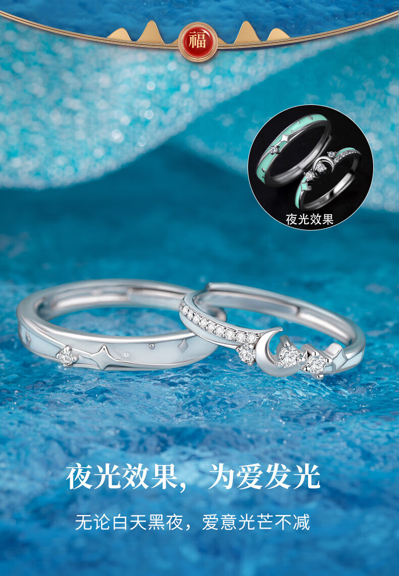Zhizhen Yinlou Moonlight Lovers Silver Couple Rings for Men and Women, Living Birthday, Chinese Valentine's Day, Valentine's Day Gift for Girlfriend and Wife, Jingsuda Moonlight Lovers, Luminous Couple Rings