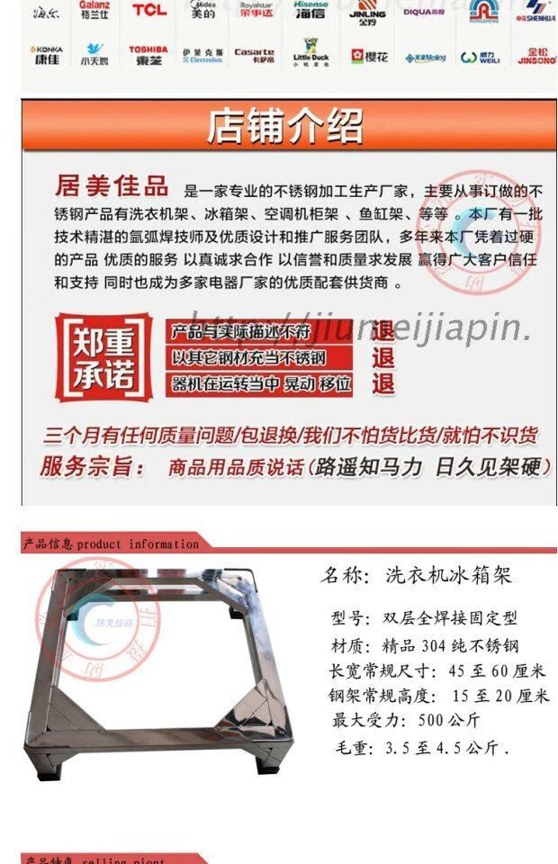 Kezitu customized 304 stainless steel drum pulsator fully automatic washing machine ice making rack refrigerator base washing machine bracket 424220