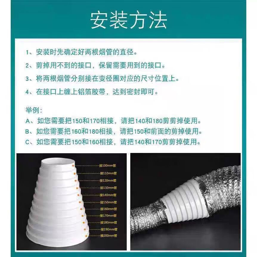 An Junsheng Range Hood Reducing Ring Exhaust Pipe Conversion Joint Large Head Check Valve Conversion Head 80-200mm Reducing Ring + Matching Tape