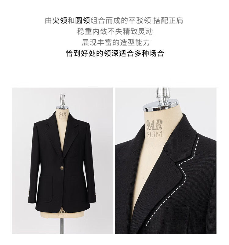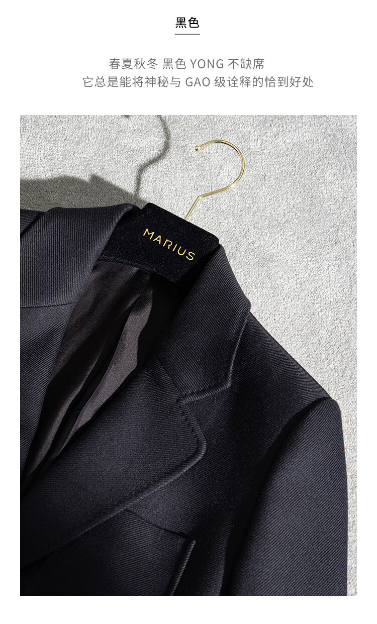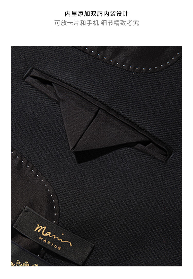 MARIUS Black Label Elegant Old Money Traceable Wool Three Patch Pockets Micro Waist Right Shoulder Blazer Women's Black Blazer XS