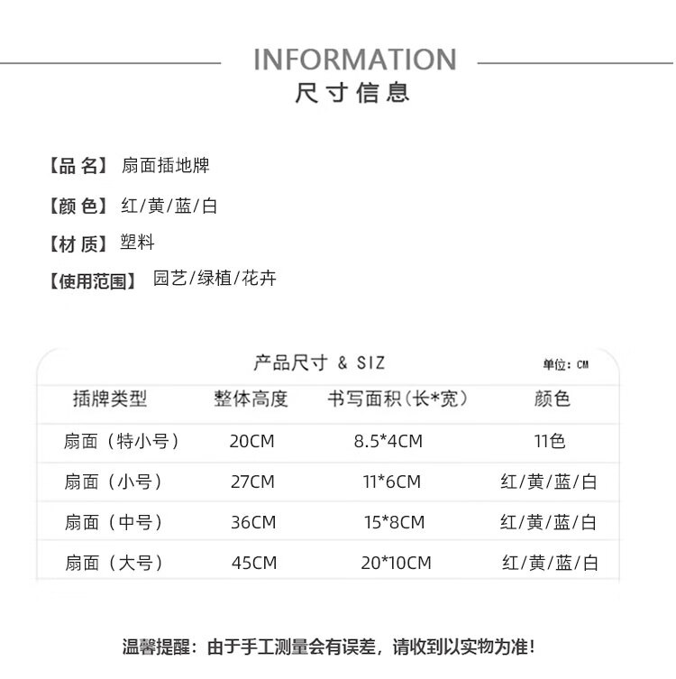 BENXINNONG fan-shaped ground sign gardening flower thickened plastic sign can be written on the sign plant label HXM5 multi-color height 45cm 10 pieces