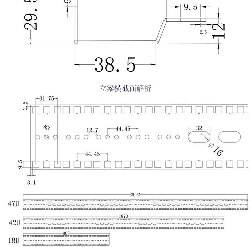 Cabinet Beams and Columns Network Server Cabinet Beams, Columns, Square Hole Beams, Vertical Beams, U-shaped Strips Specifications Complete Customized Accessories 0x0x0cm 47U Height 2091mm Plate Thickness 1.5 Scaled