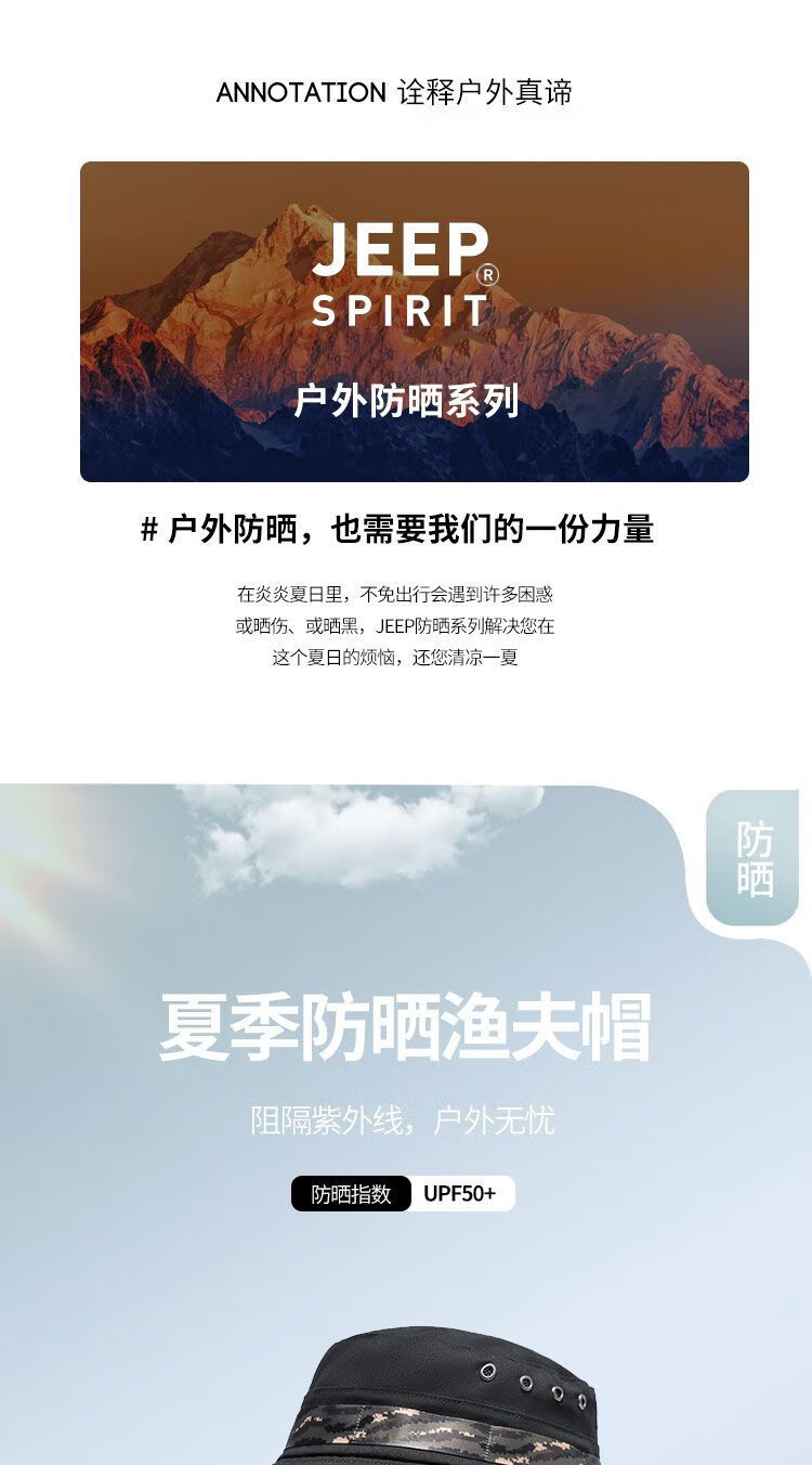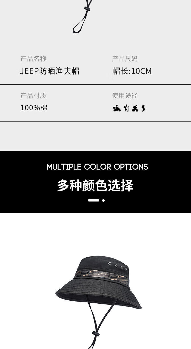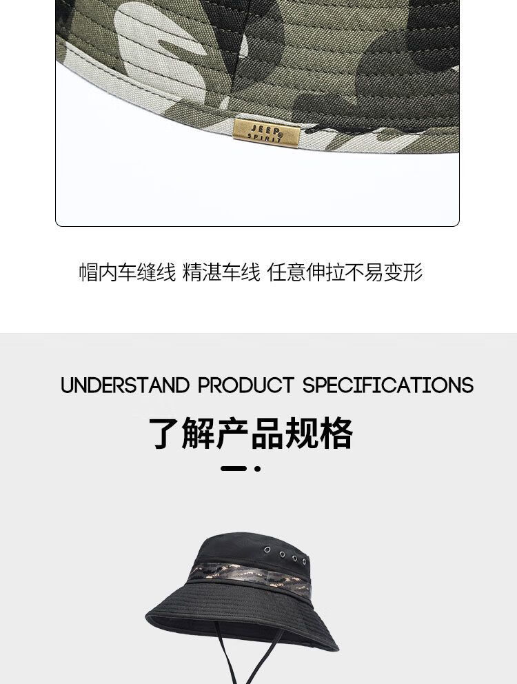 Jeep (JEEP) Mountaineering Hat Men's Sunshade Bennie Hat Outdoor Fishing Men's Sun Protection Hat Fisherman Hat Summer Breathable 485 Styles - Camouflage Khaki