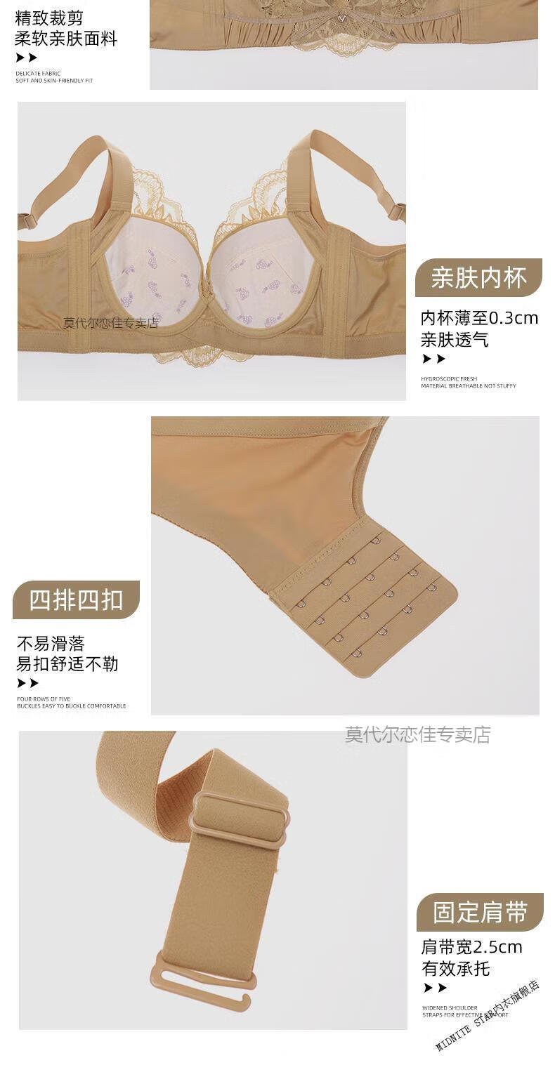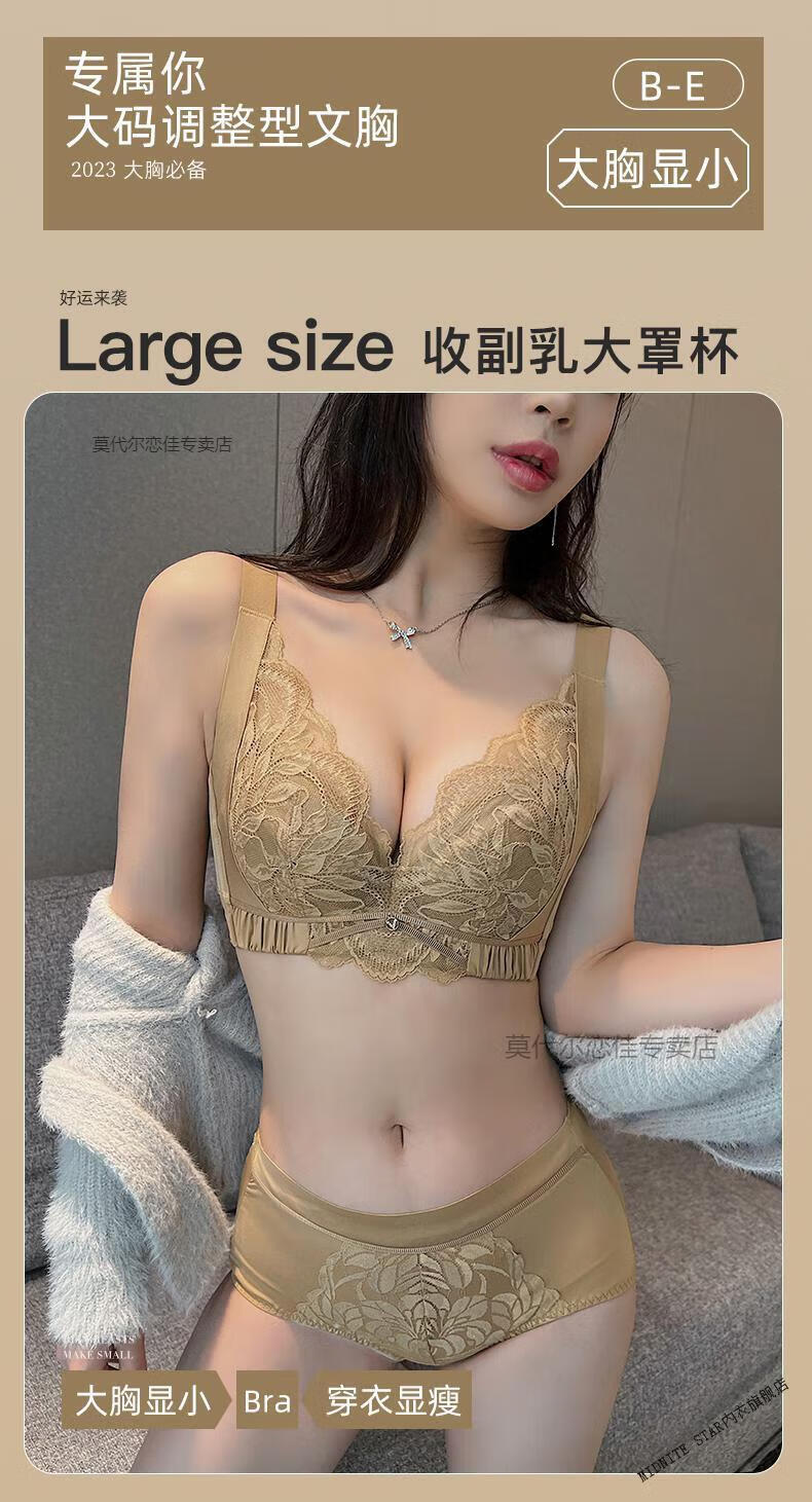 Modal high quality large size underwear for women with large breasts, push-up anti-sagging, secondary breast support bra set, burgundy (set) 85B /38
