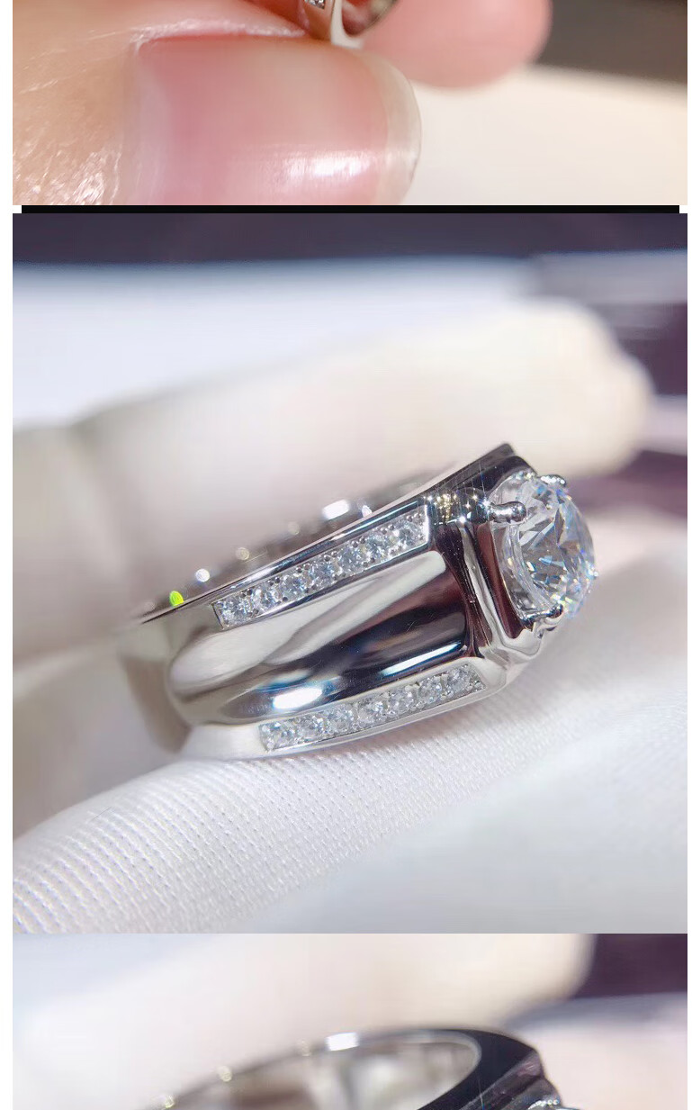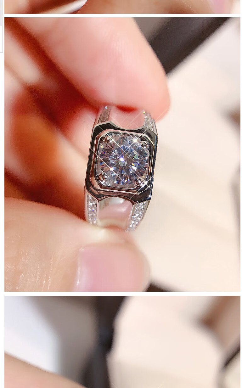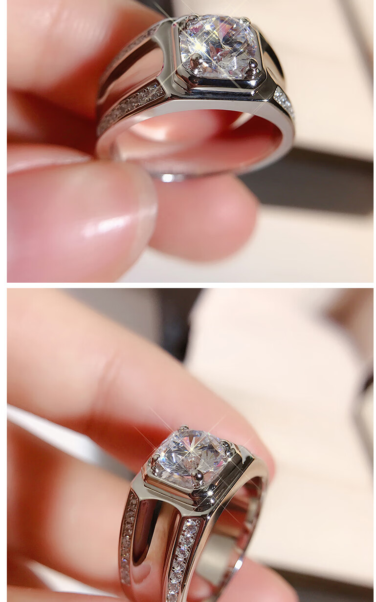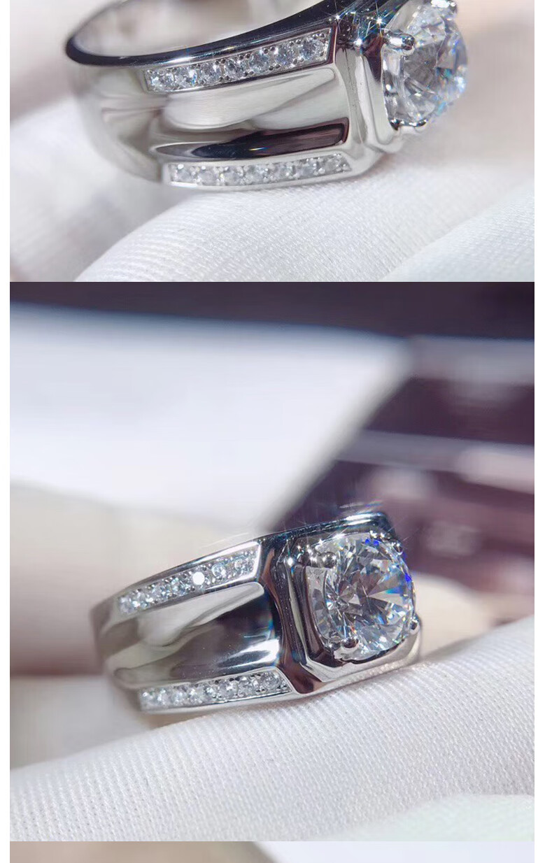 DL 1998 Fat Donglai same style platinum men's ring Pt950 moissanite diamond white gold one carat simple frosted fashion platinum-glossy men's ring