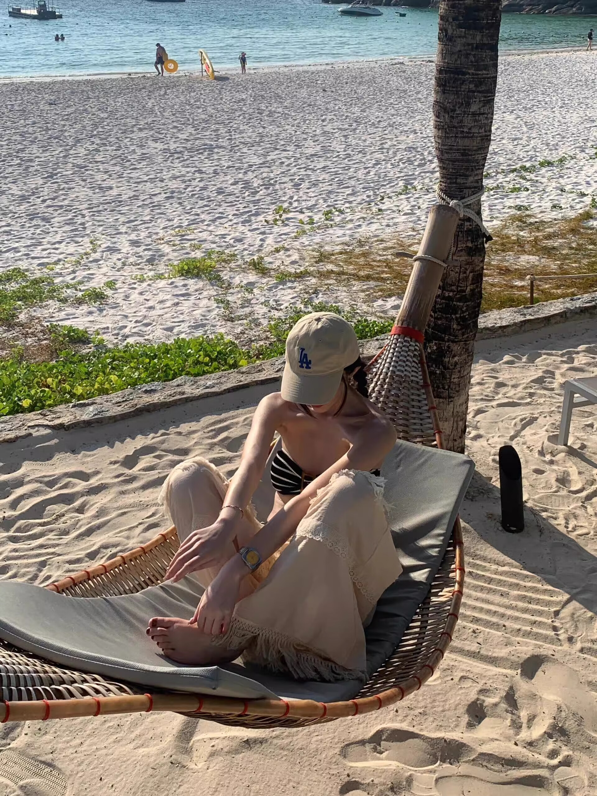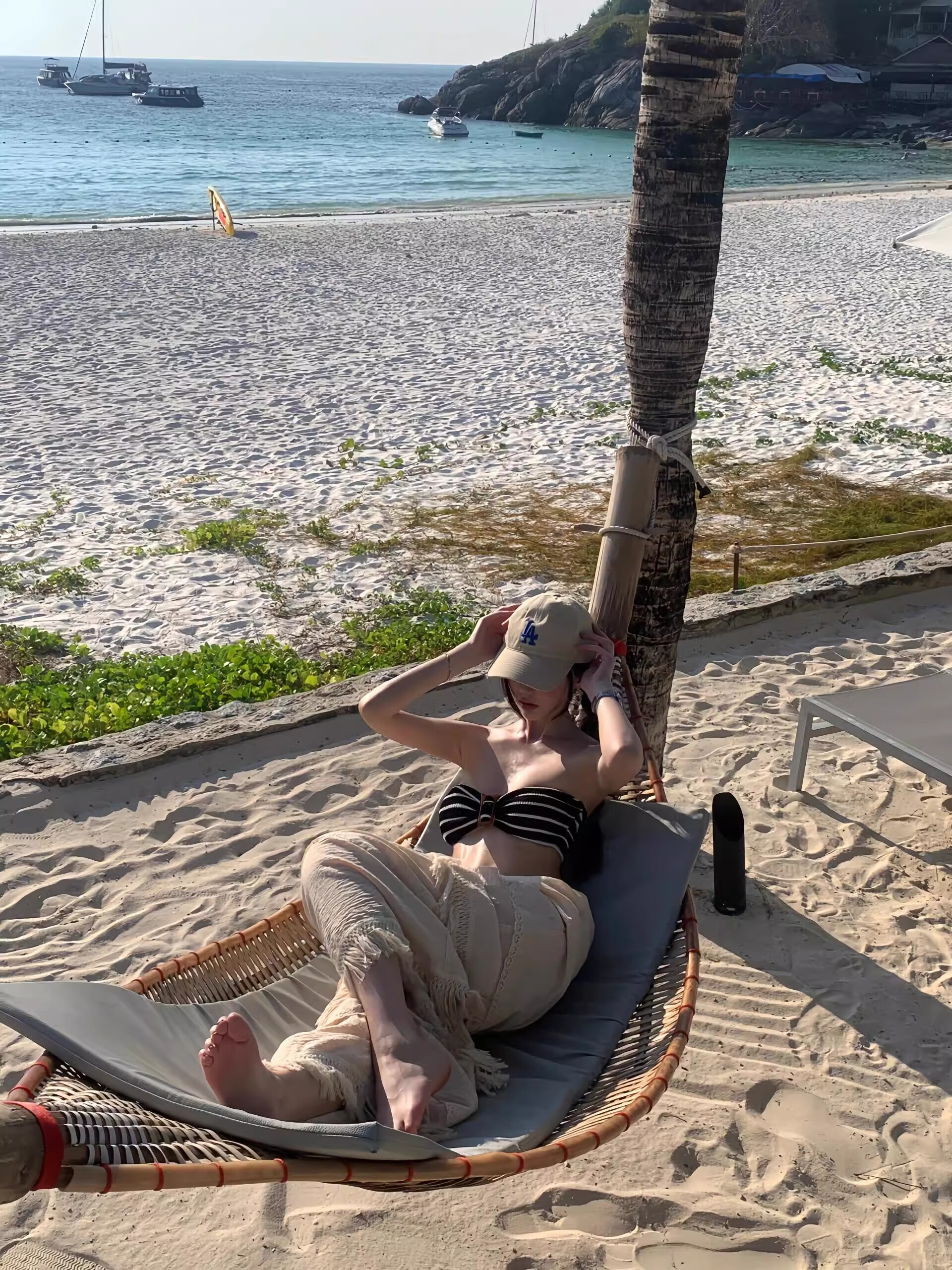 Fun women's black and white striped bikini tube top three-point small breasts sweet and cute beach vacation hot spring black M95-110Jin Jin equals 0.5 kg