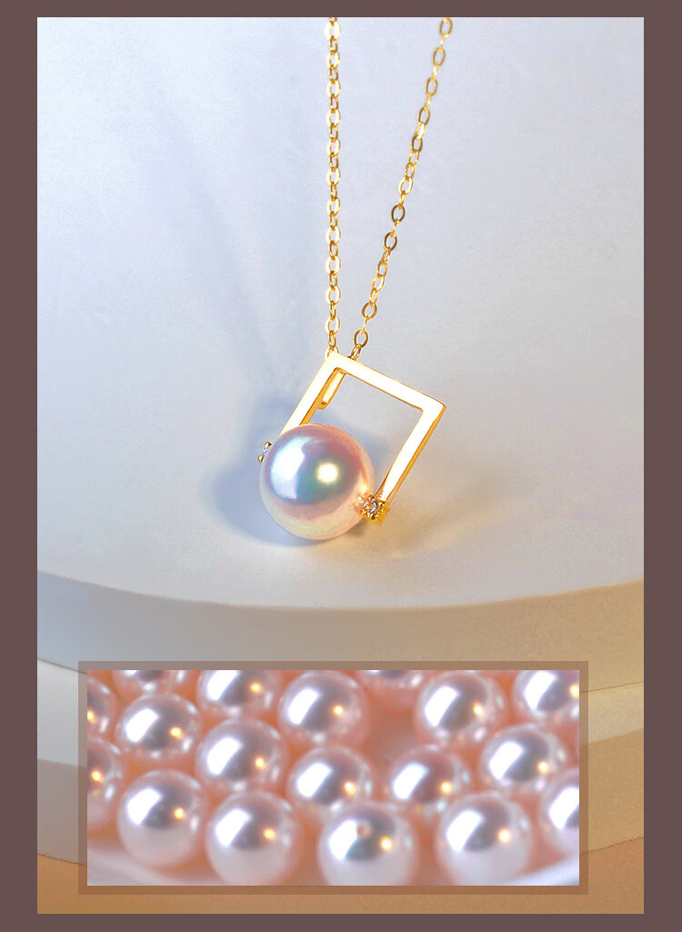 DRJEFUN Japanese akoya freshwater pearl pendant 18K gold heavenly grade extremely bright sea pearl necklace round 8-8.5MM 18K gold heavenly grade 8-8.5mm
