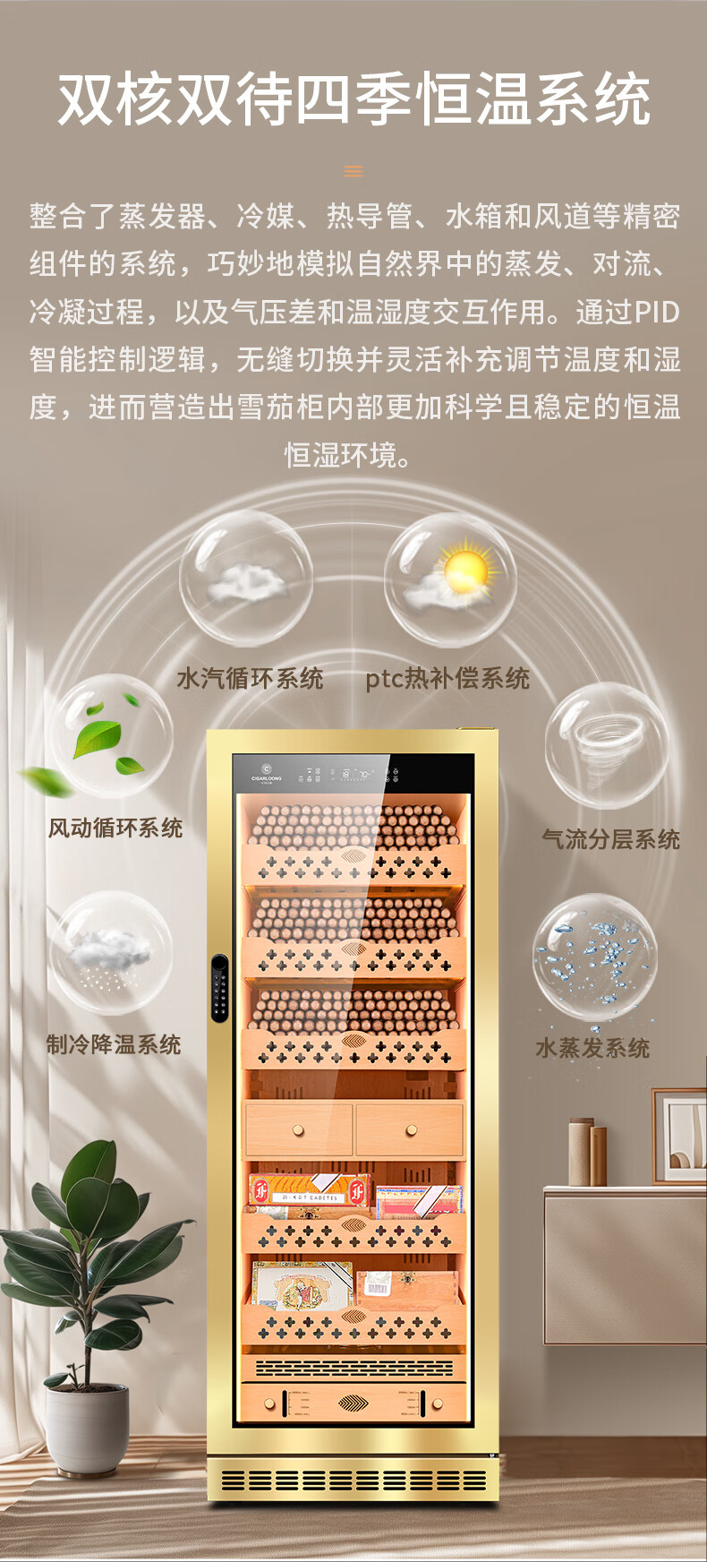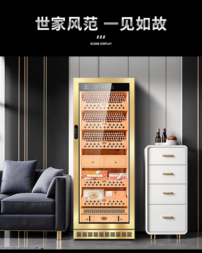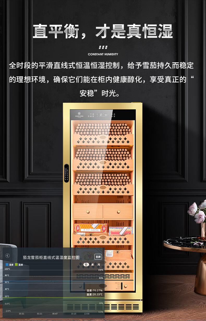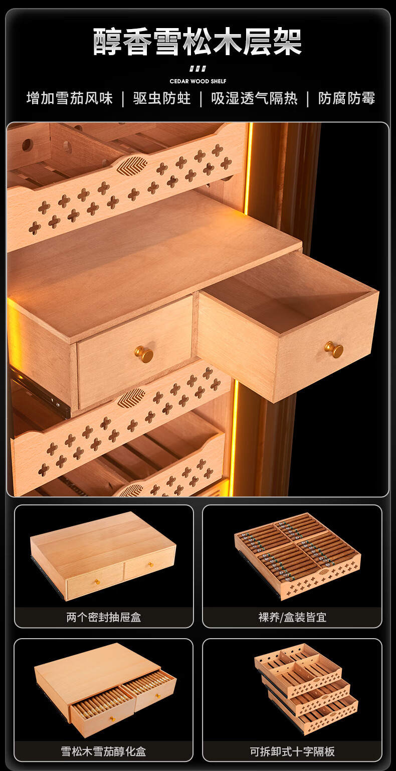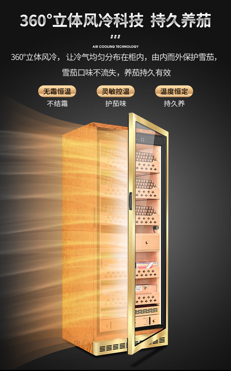 Kelong CL-120C2 cigar cabinet, constant temperature and humidity, cedar wood liner, humidification cabinet, water ion purification ammonia, WiFi cigar cabinet, compressor cabinet, fingerprint password lock, cigar double cabinet, diamond silver tree burr pattern (double door combination cigar cabinet)