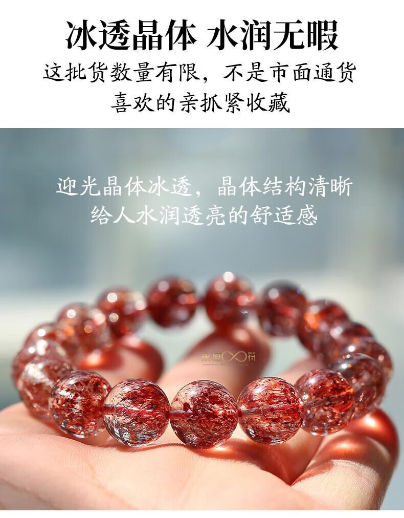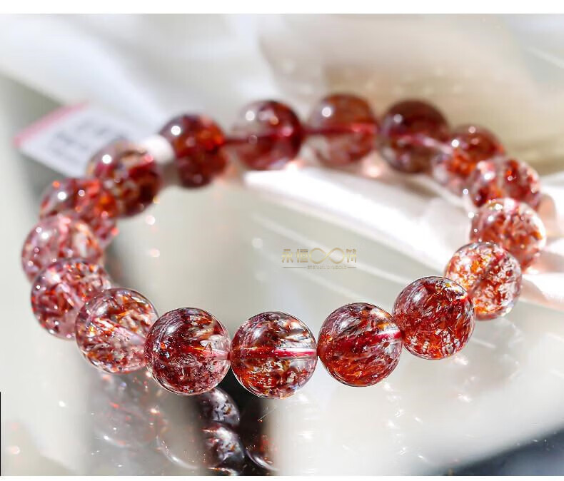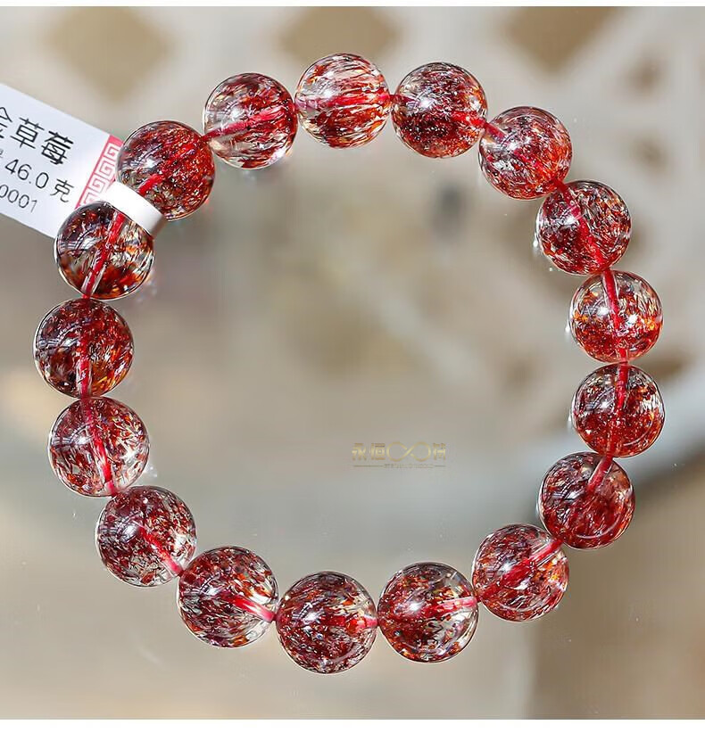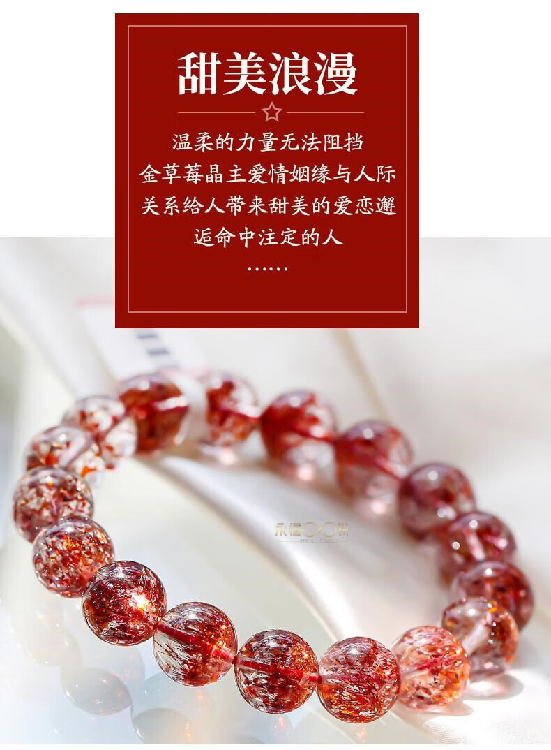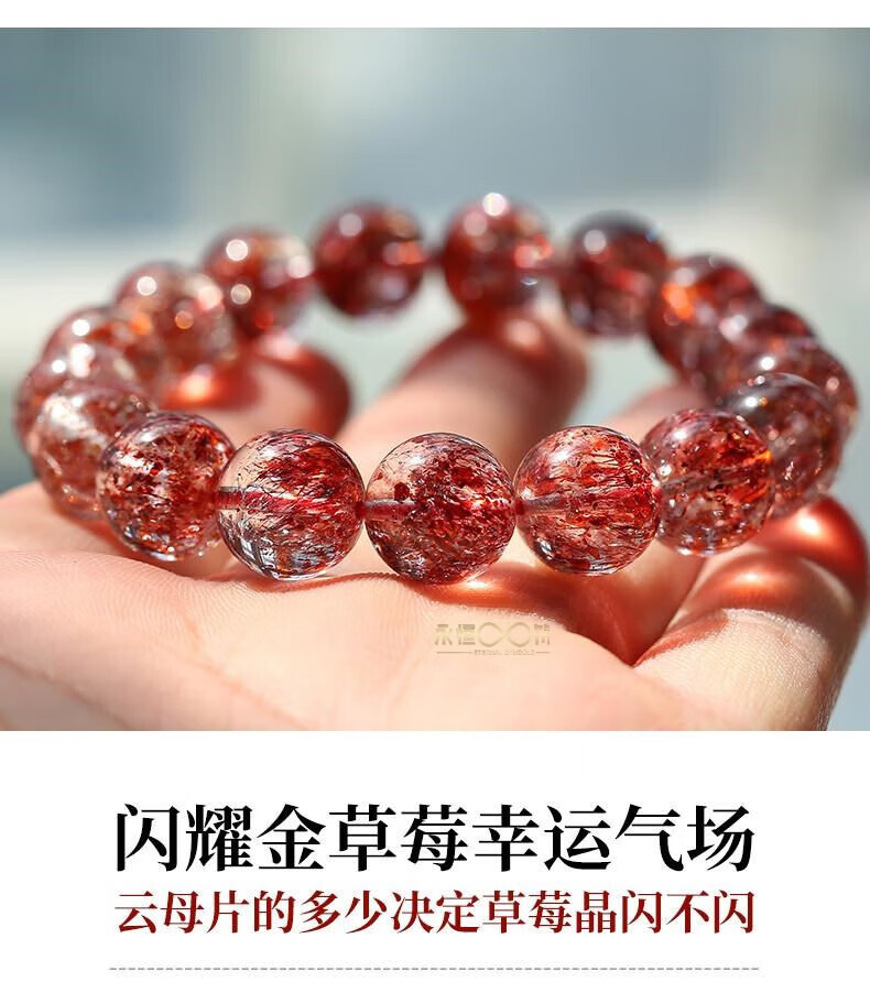 Eternal symbol light luxury brand natural golden strawberry bracelet three-wheel backbone amethyst bracelet for women's super seventh birthday gift collectible golden strawberry crystal 7mm 1 carat