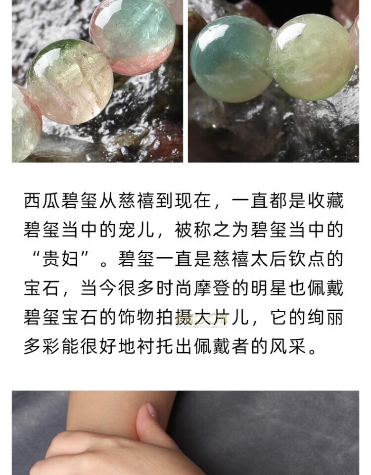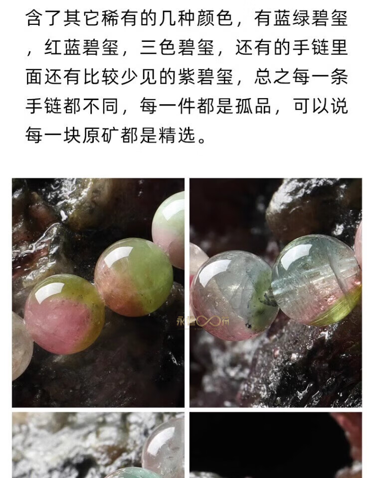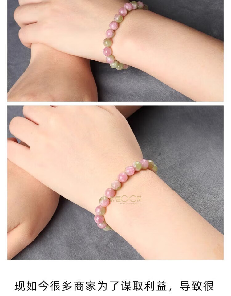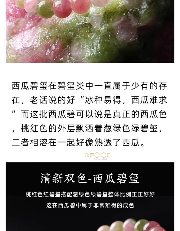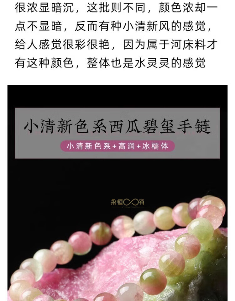 Eternal symbol brand collectible crystal bracelet for women, Brazilian old mine two-color multi-color watermelon tourmaline bracelet as a gift, high-quality watermelon tourmaline 7mm