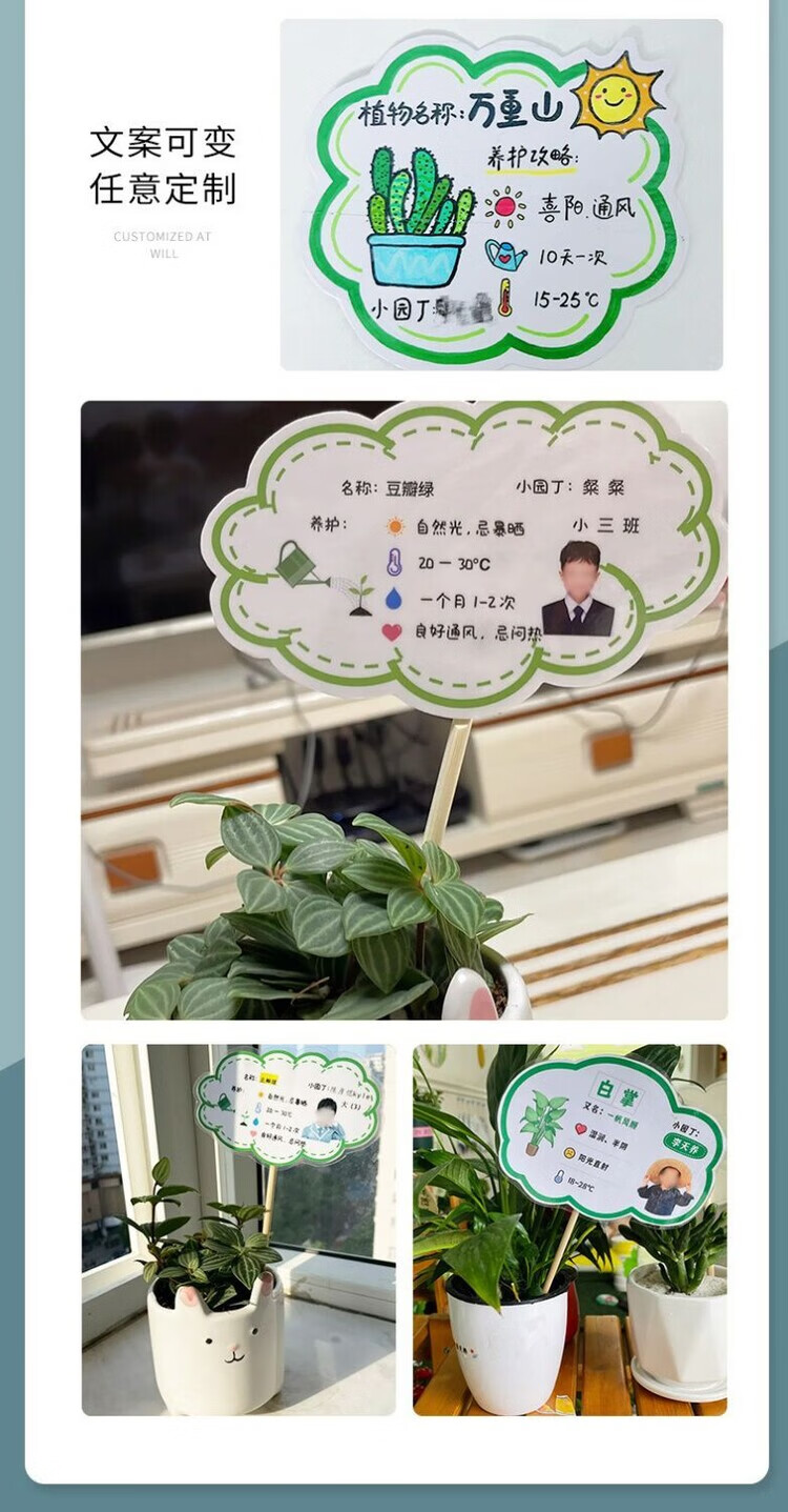 Pflanzenpflegekarte, grüne Pflanzenkarte, Kindergartenetikett, individuelles wasserdichtes Namensschild für Topfpflanzen, Gartenarbeitsaktivität, gemischtes und passendes Damenmodell, 6 Blatt, nicht wasserdicht, kostenloser Clip