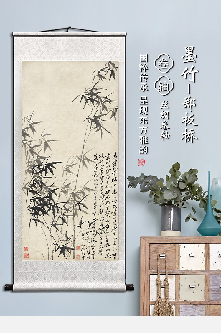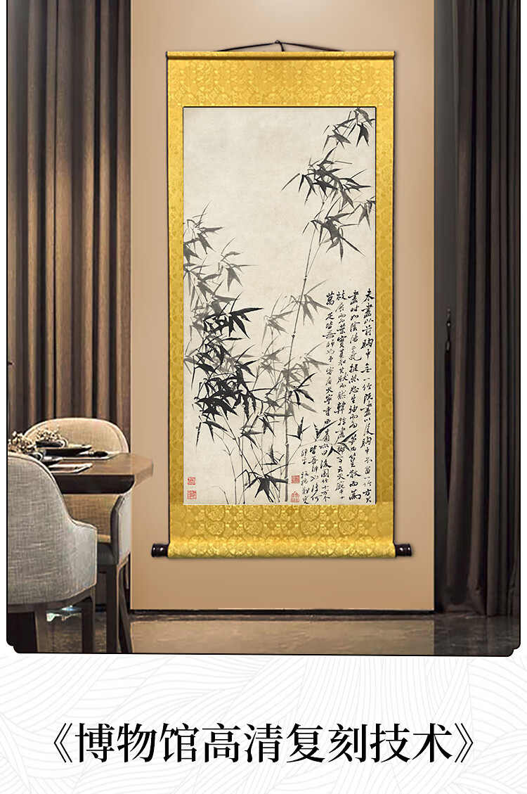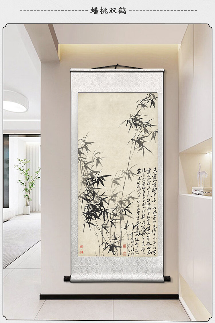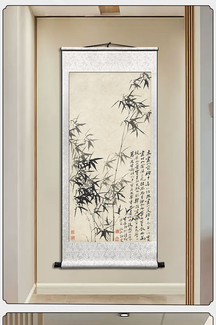 Book and Dance Hall Zheng Banqiao Bamboo Hanging Painting Celebrity Calligraphy Calligraphy and Painting Ink Chinese Painting Bamboo Newspaper Peaceful Living Room Bedroom Landscape Decoration Painting Bamboo and Stone Pictures - Zheng Banqiao - Vertical Style - Silver White Style Overall Size Width 50cm Height 100cm (Hook included)