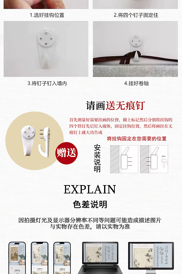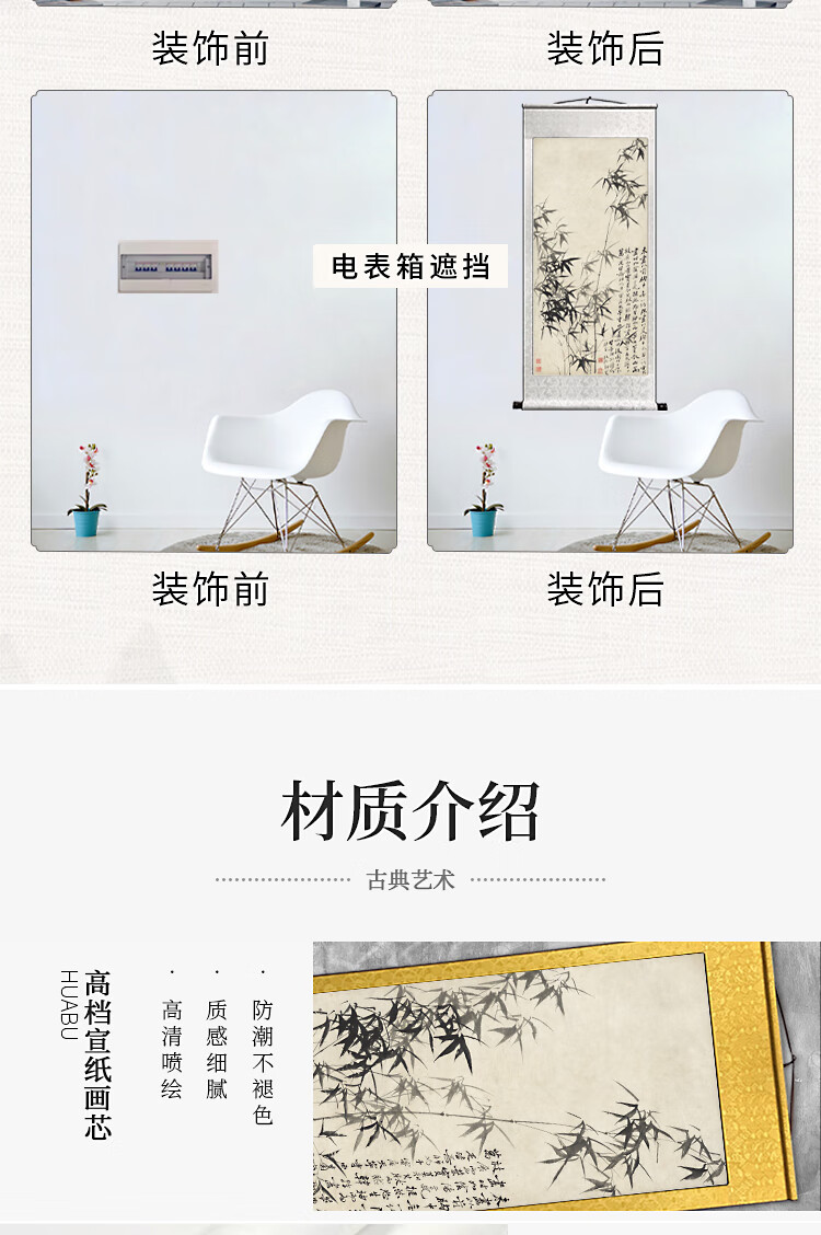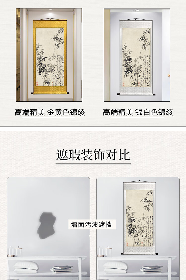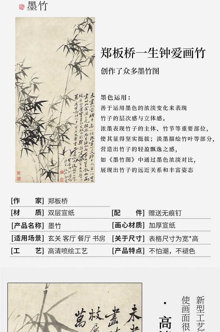 Book and Dance Hall Zheng Banqiao Bamboo Hanging Painting Celebrity Calligraphy Calligraphy and Painting Ink Chinese Painting Bamboo Newspaper Peaceful Living Room Bedroom Landscape Decoration Painting Bamboo and Stone Pictures - Zheng Banqiao - Vertical Style - Silver White Style Overall Size Width 50cm Height 100cm (Hook included)