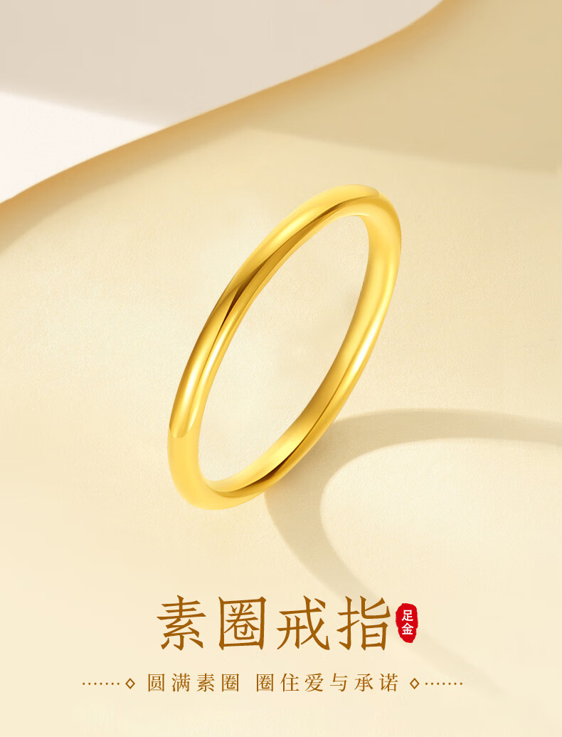 Chinese gold plain gold ring women's pure gold jewelry birthday gift for girlfriend mother wife wedding anniversary pure gold pure gold ring ring ring number 13 + certificate gift box