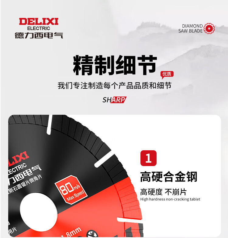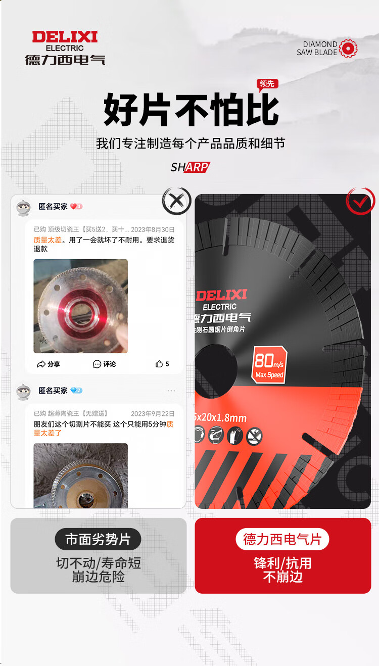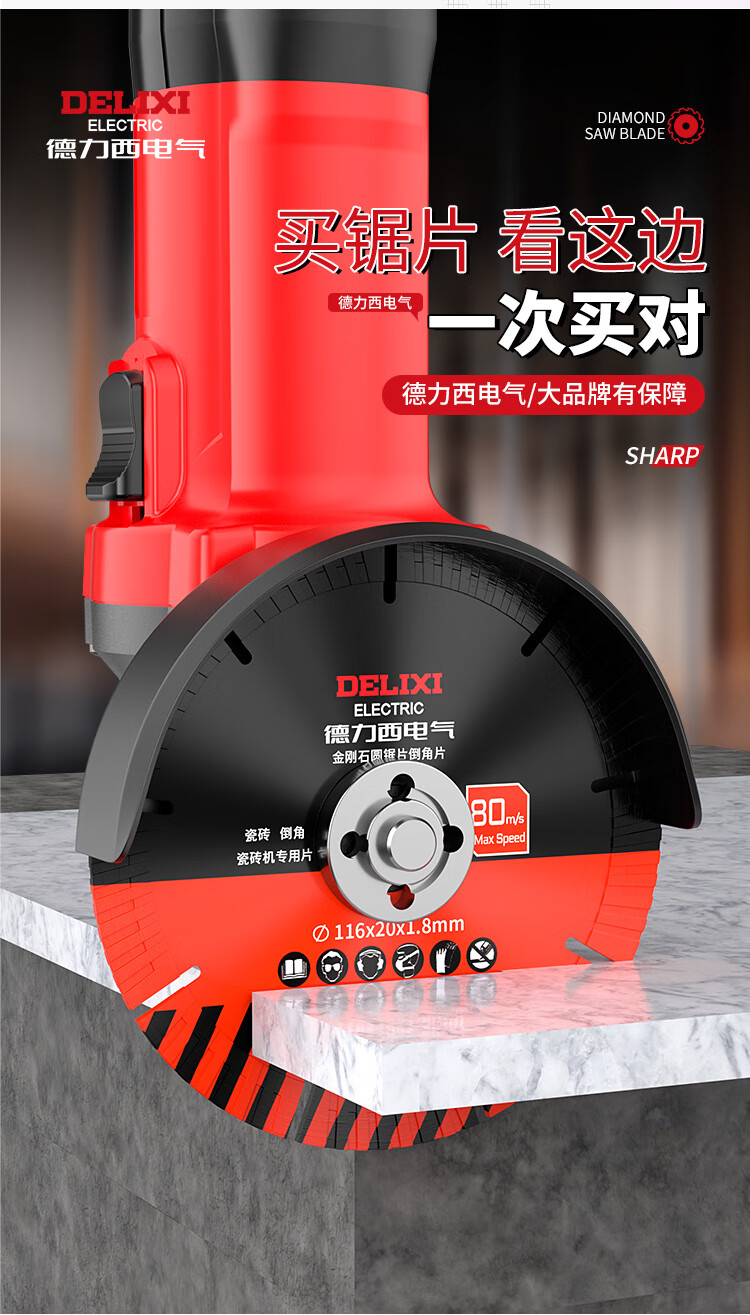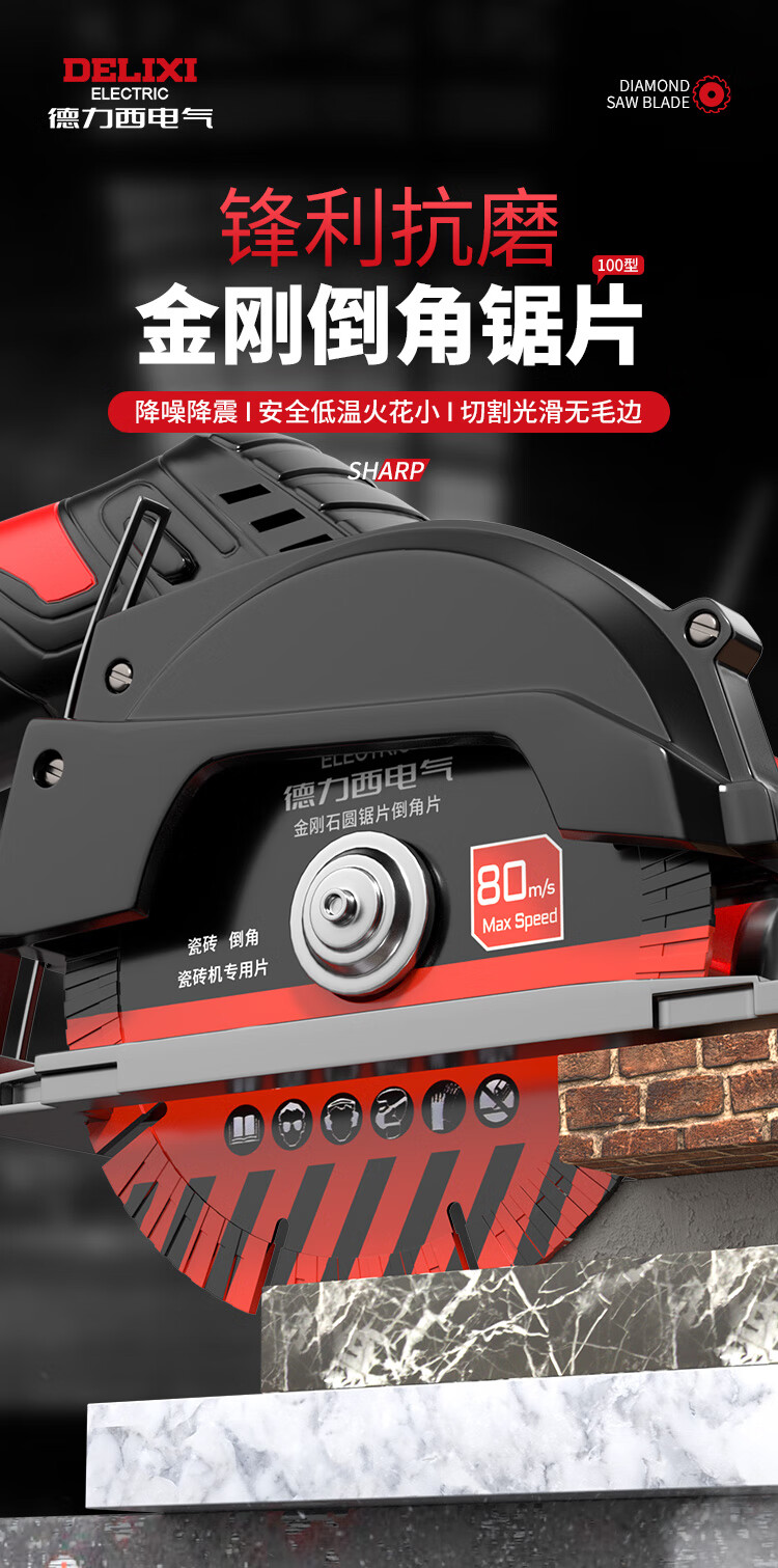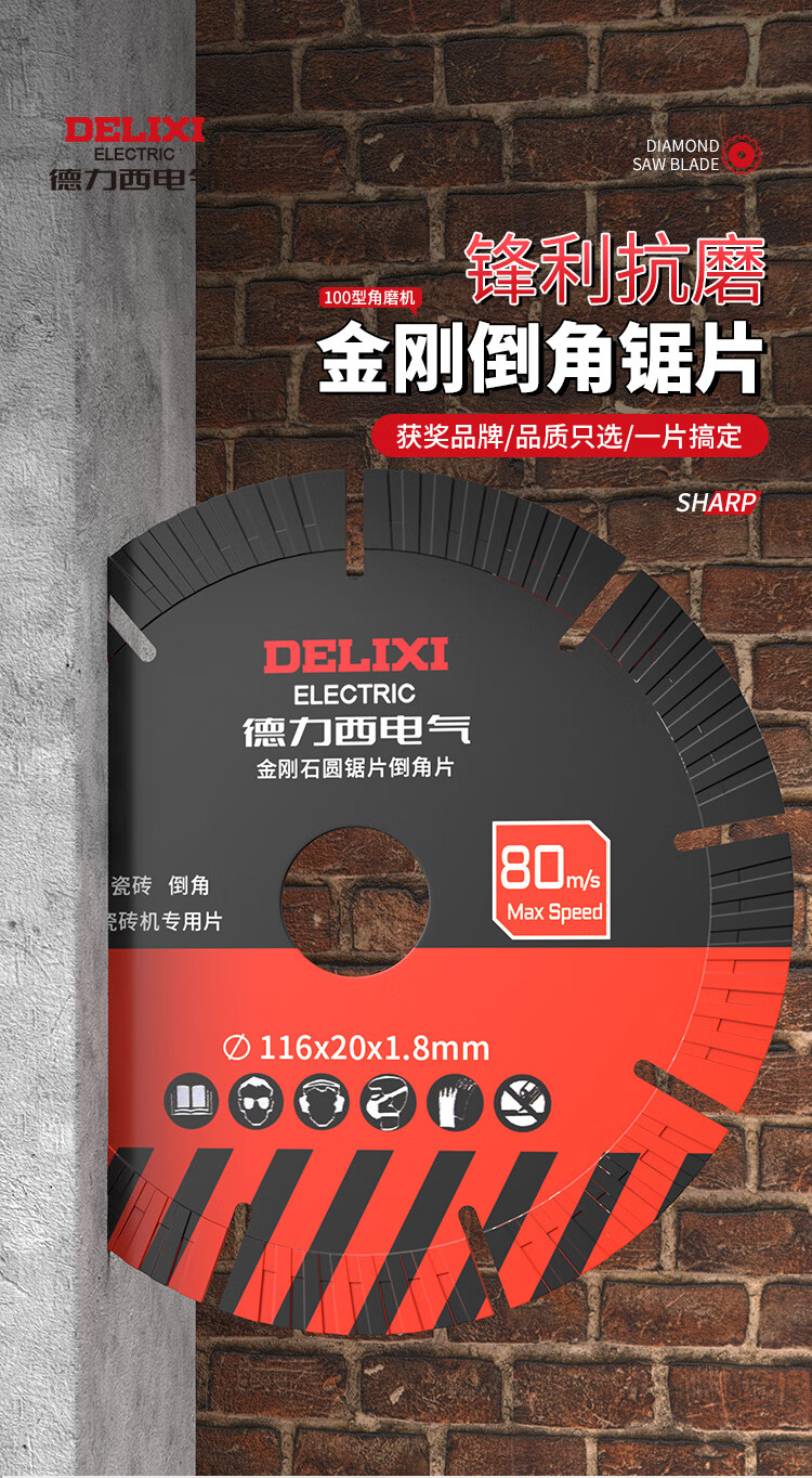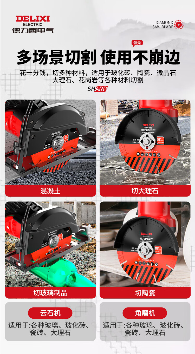 Delixi Electric Marble Sheet Concrete Tile Cutting Sheet Marble Dry Slicing Vitrified Tile to Corner Sheet Wall Groove Marble Machine Saw Blade King Kong Chamfering Sheet 116x20x1.8 2 pieces