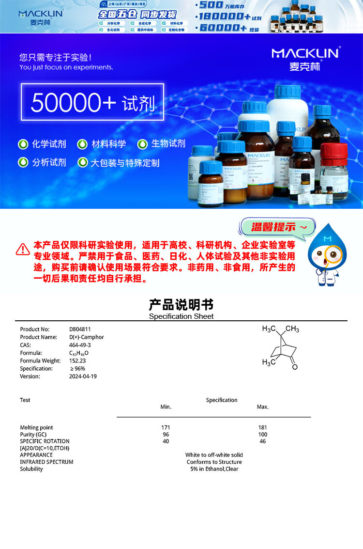 Macklin D(+)-camphor (natural) CAS 464-49-3 D804811-25g