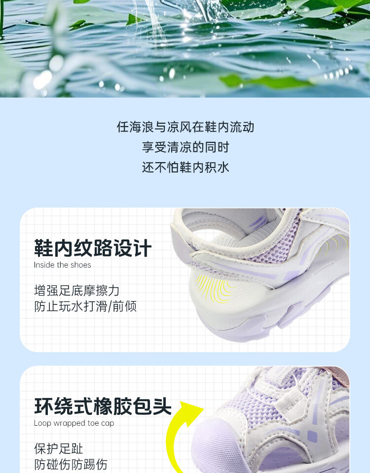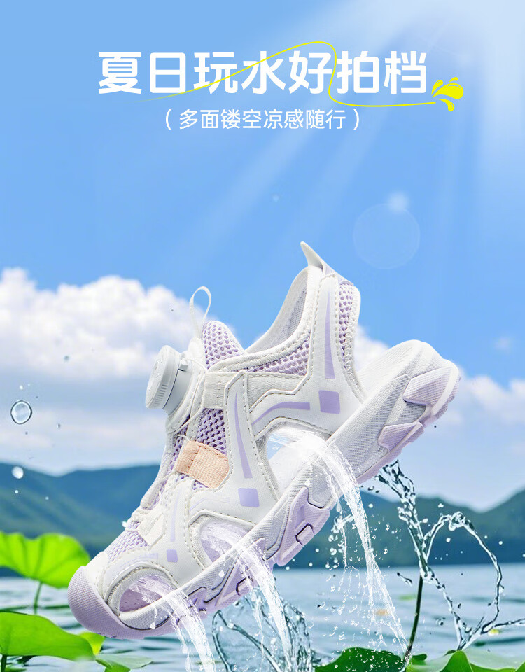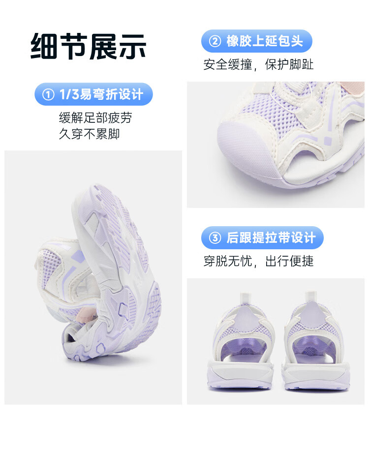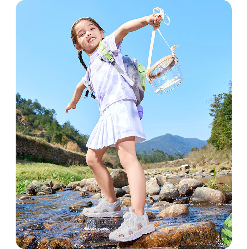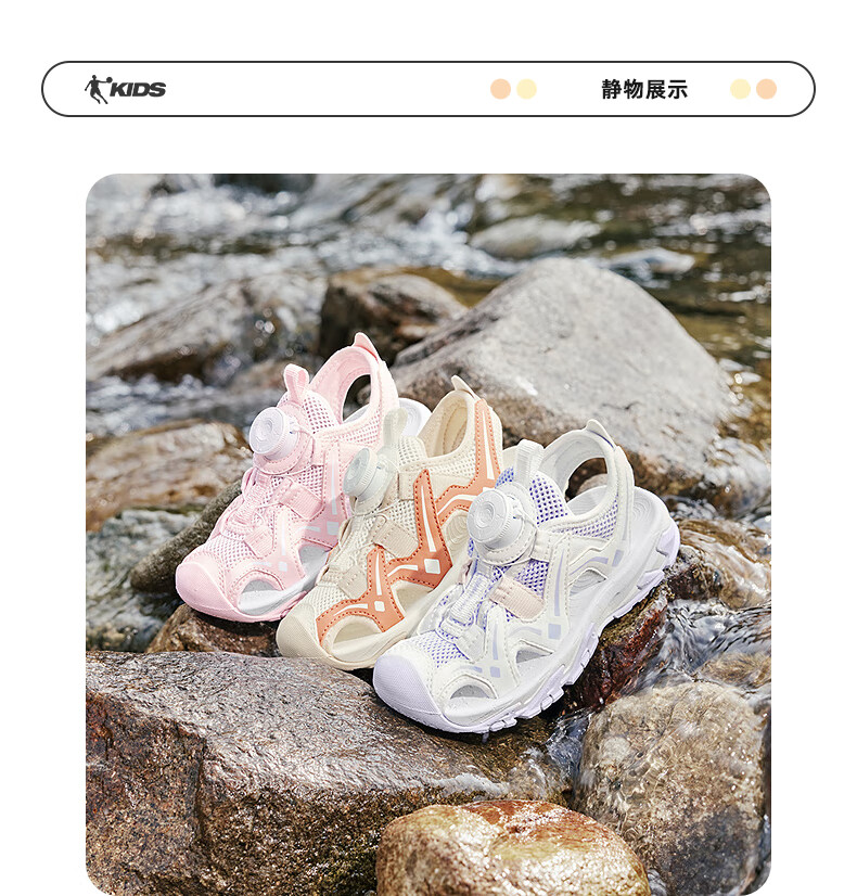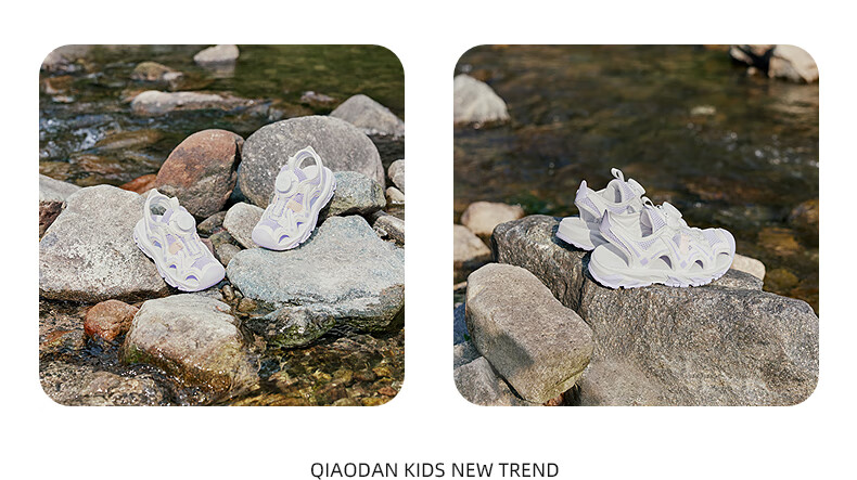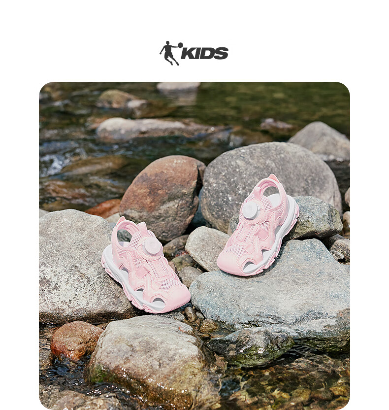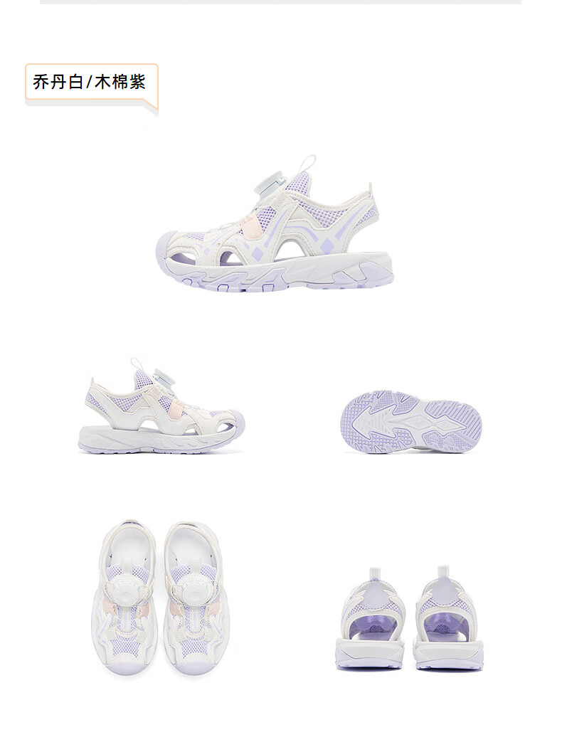 Jordan (QIAODAN) children's shoes, children's sandals, new summer girls' river shoes, Baotou non-slip children's beach shoes, Jordan White/Kapok Purple 29
