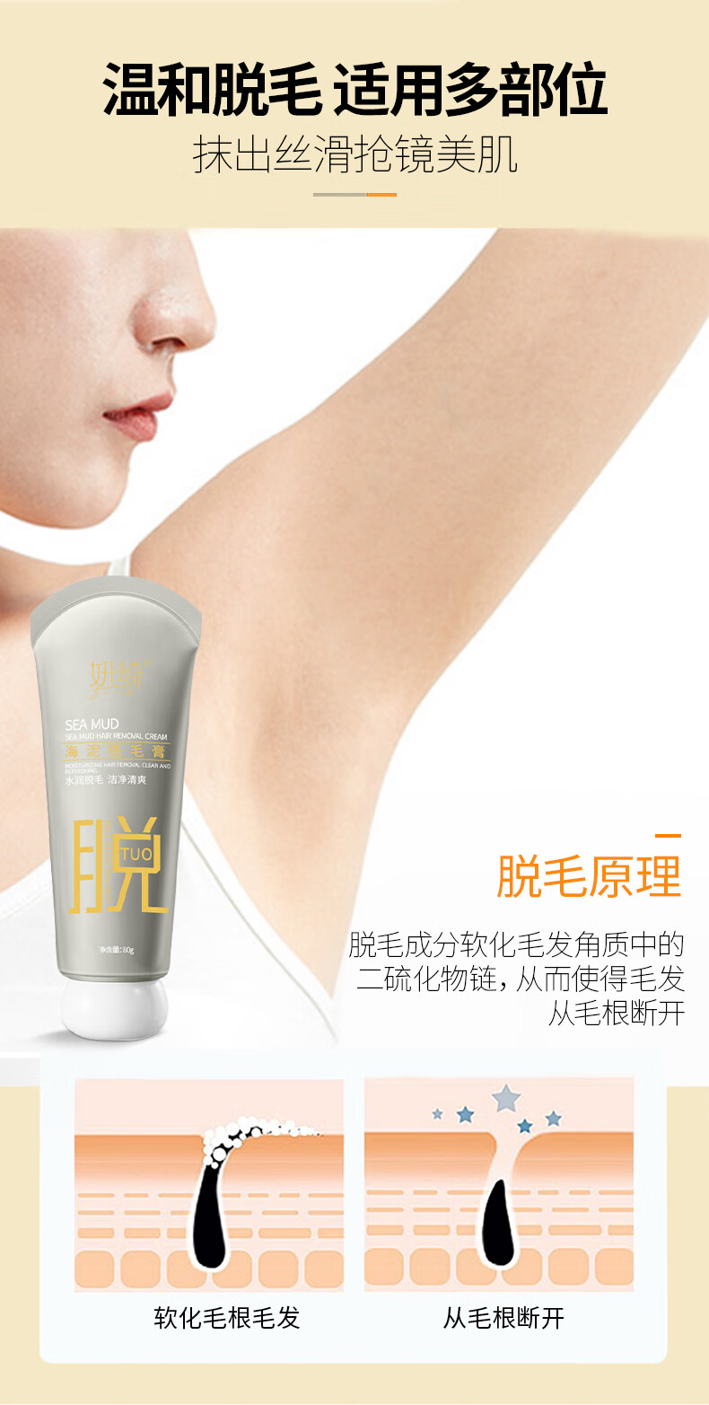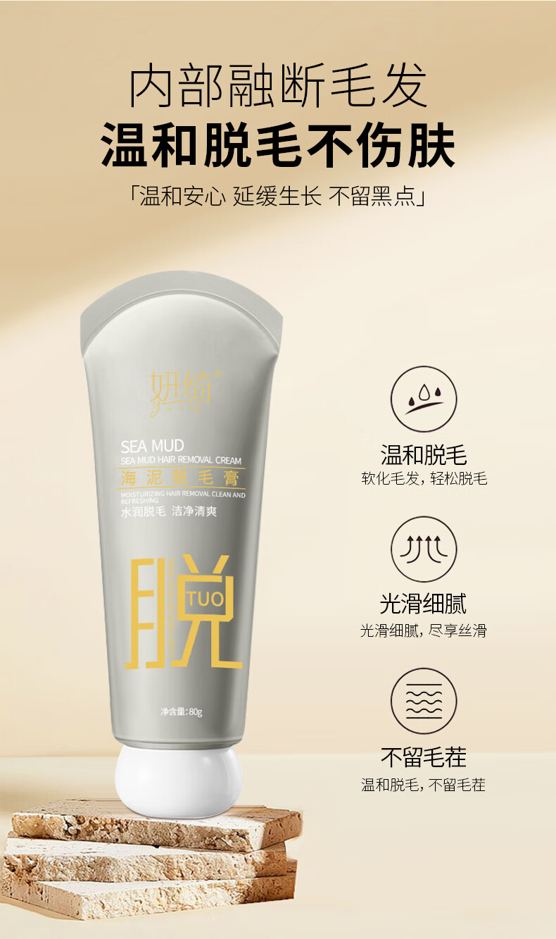 Sea Mud Hair Removal Cream for Private Parts, Special for Men and Women, Armpit and Leg Hair Removal, Gentle and non-irritating for the whole body (1 bottle) Sea Mud Hair Removal Cream 80g