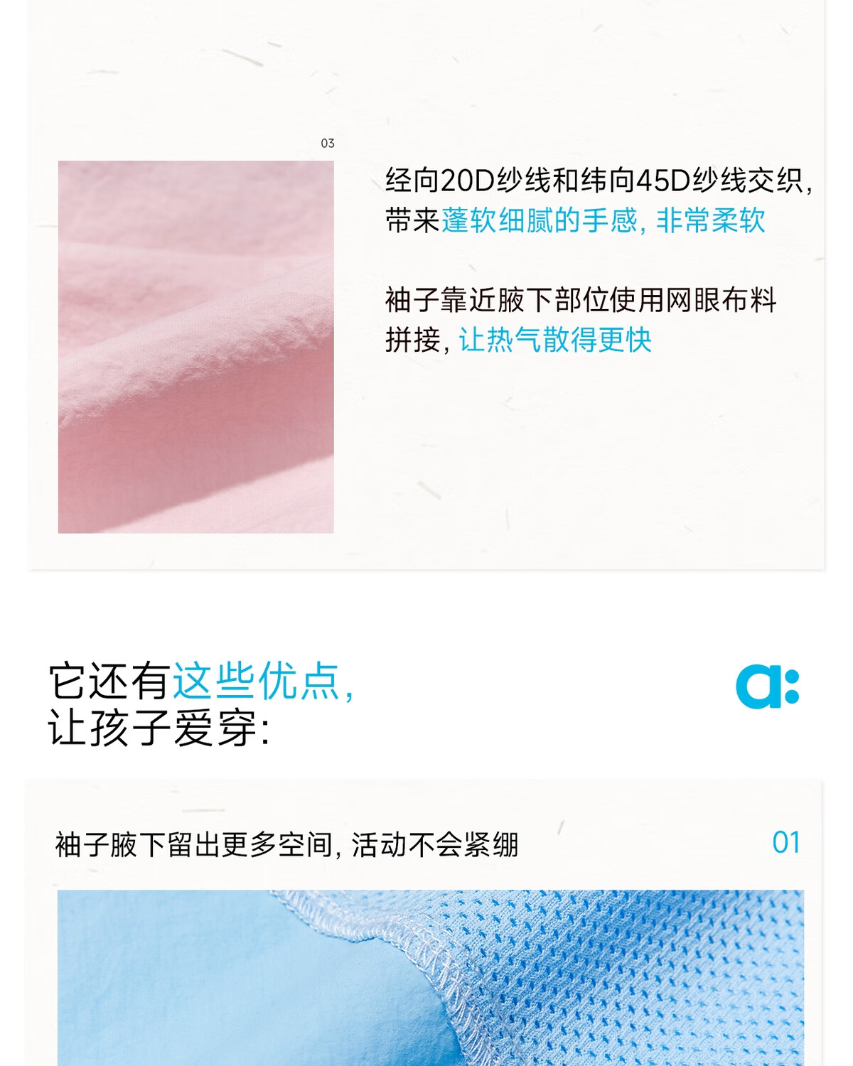 ALLBLU allblu Youlan lightweight sun protection sweatshirt children's sweatshirt 25 spring and summer new style boys and girls UPF50+ glutinous rice flour 150