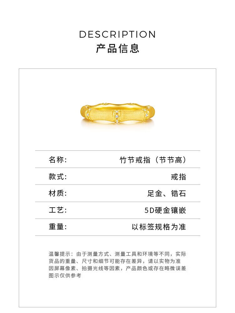 Mankaron Bamboo Gold Ring (High) Pure Gold 5D Hard Gold Inlaid Fashion Birthday Gift #11 1.66g