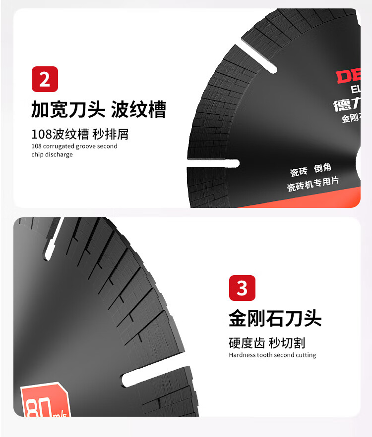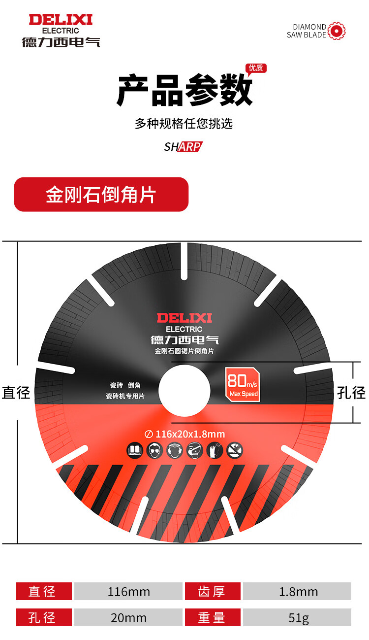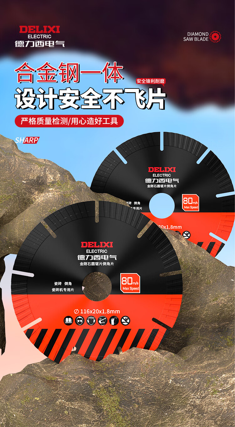 DELIXI ELECTRIC chamfering machine special ceramic tile cutting blade 116 straight cut 45 degree chamfering blade desktop water jet rock plate all-ceramic electric saw blade King Kong chamfering blade 116x20x1.8 1 piece