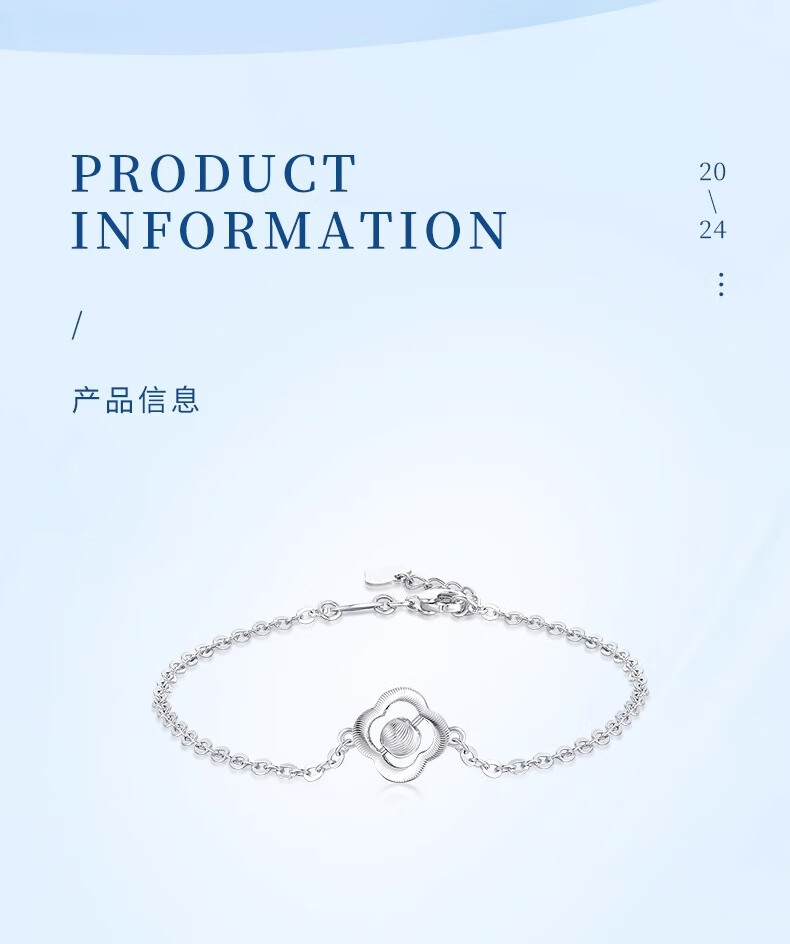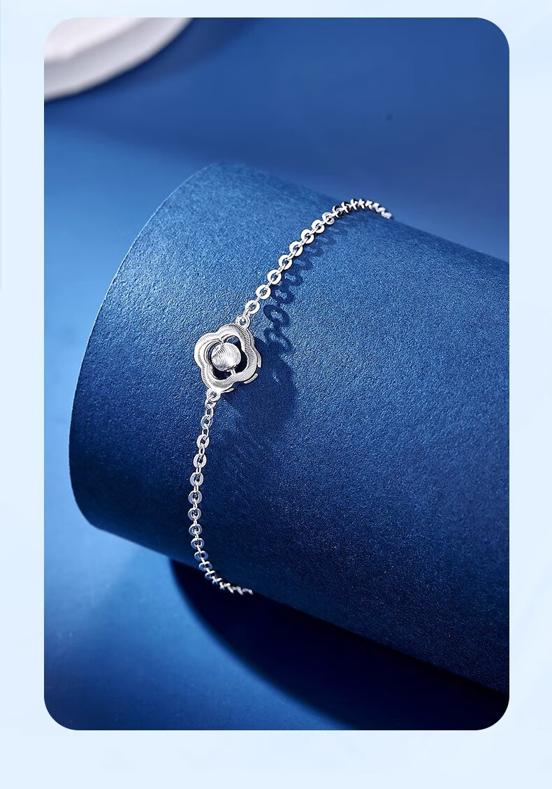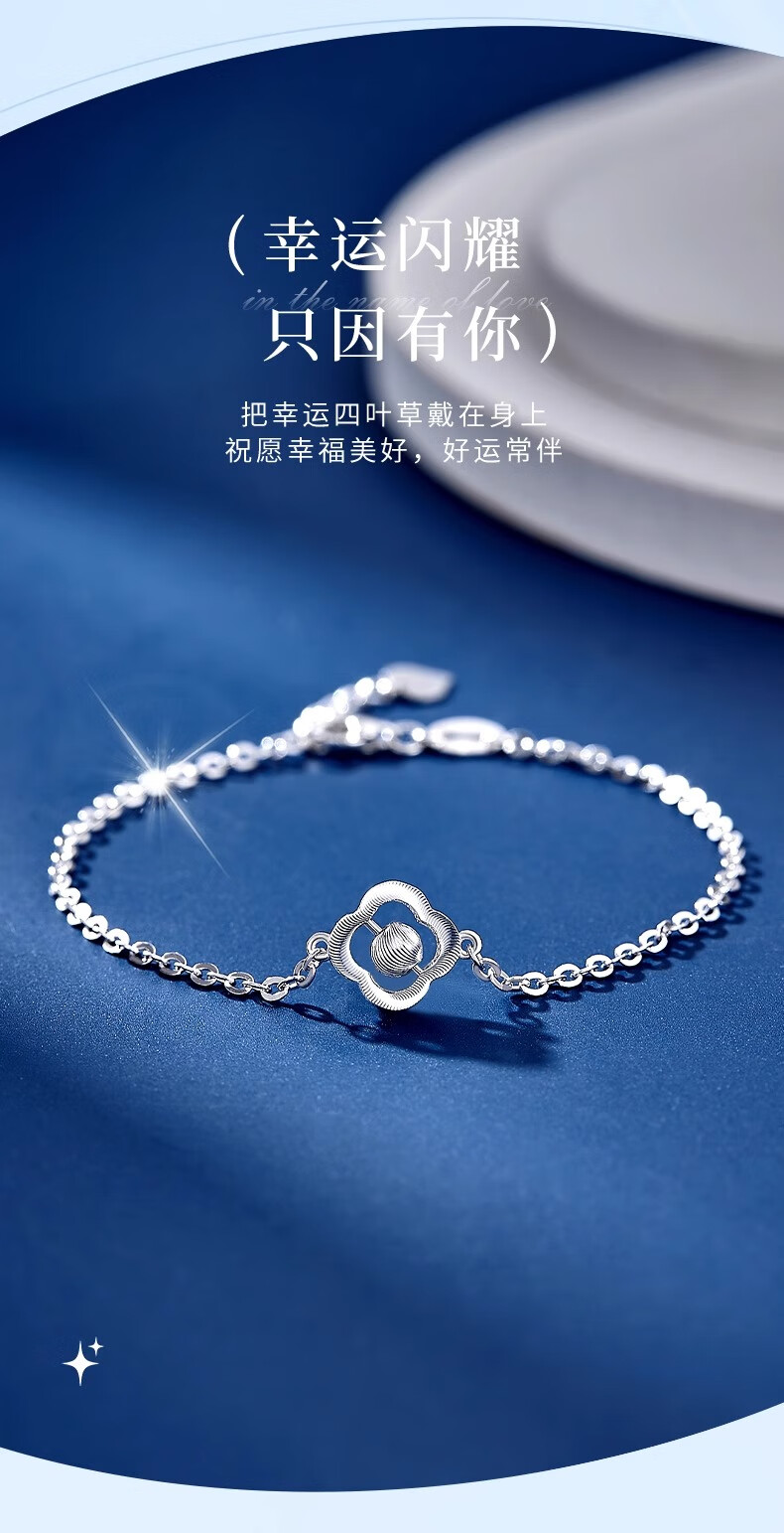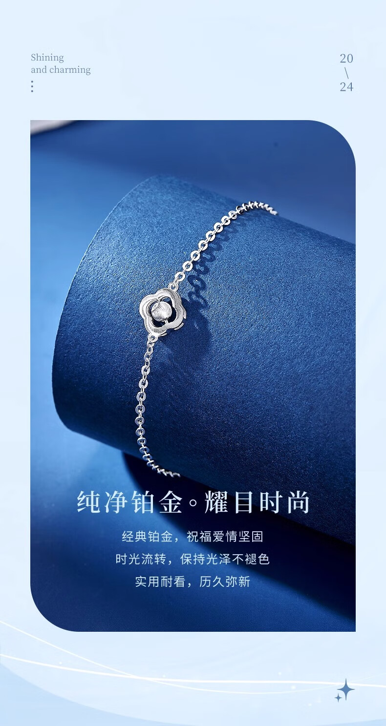 Lao Fengxiang's new clover pt950 platinum bracelet platinum women's plain bracelet birthday gift for girlfriend and wife clover cat's eye platinum bracelet - about 3.1g brand gift box