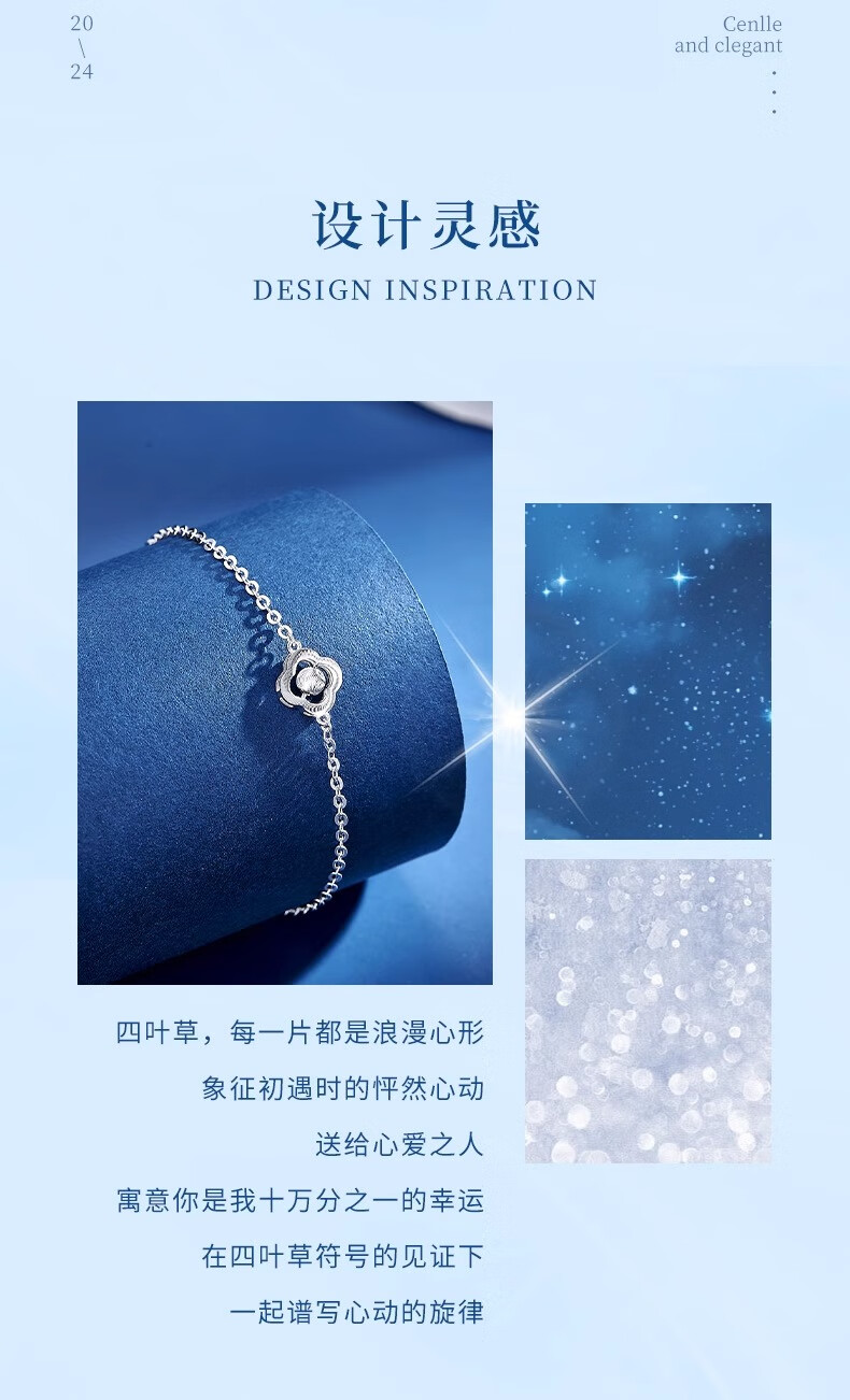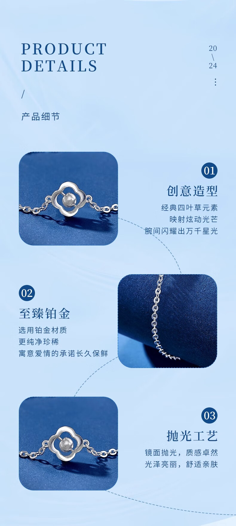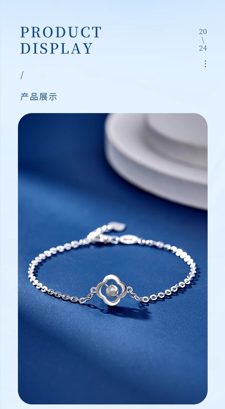 Lao Fengxiang's new clover pt950 platinum bracelet platinum women's plain bracelet birthday gift for girlfriend and wife clover cat's eye platinum bracelet - about 3.1g brand gift box