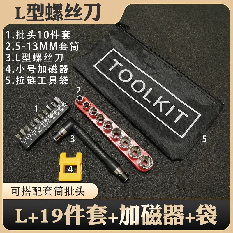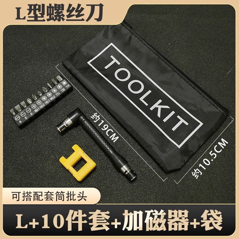 L-shaped 7-character right-angle multi-functional double-headed screwdriver set with a cross-shaped plum blossom hexagonal screwdriver sleeve small space L screwdriver + 10-piece bit set