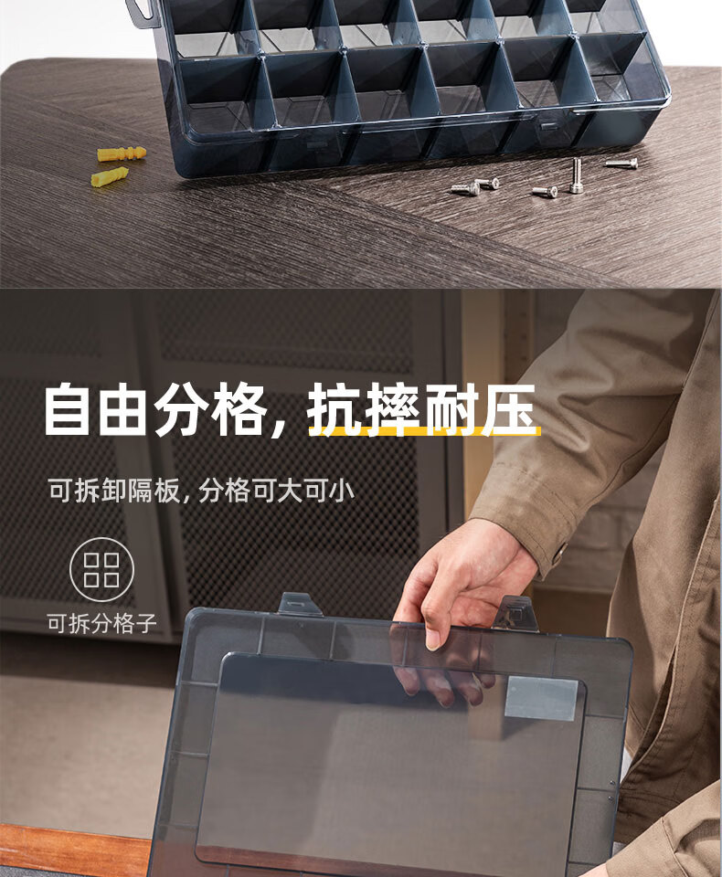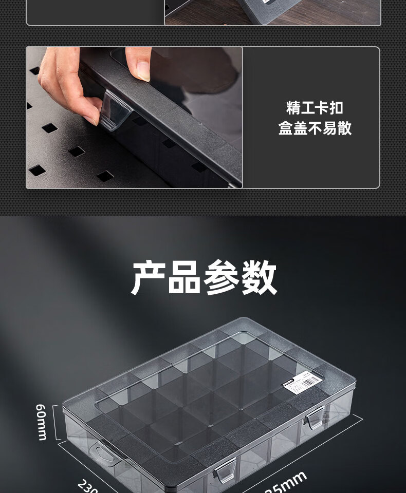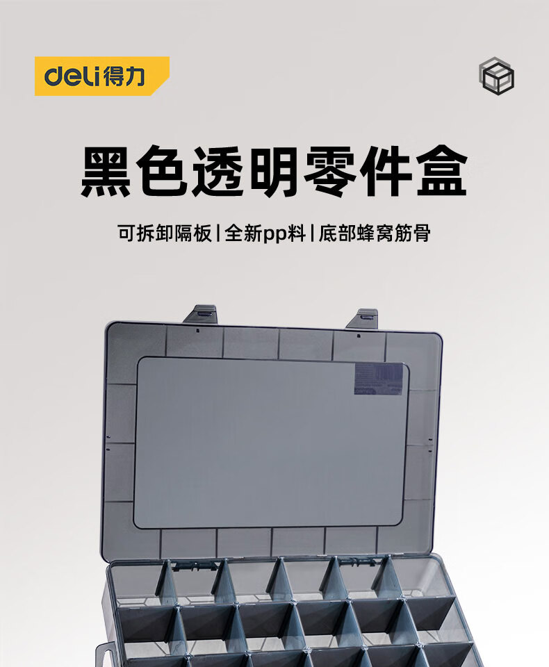 Deli parts box black transparent small grid storage box multi-functional tool box building block components screw drill bit accessories 10 grid parts box 13.5*10.5*3cm