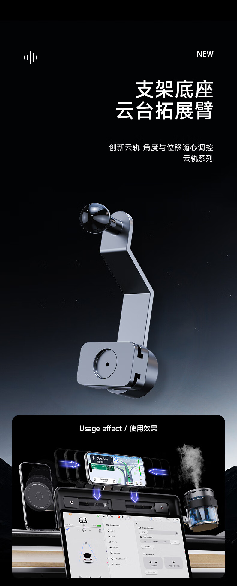 Sumi-tap suitable for gimbal card screen accessories car mobile phone holder extension arm 17mm ball head water cup holder accessories with magnetic ring silicone magnetic holder head black