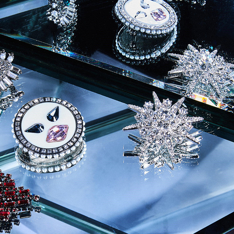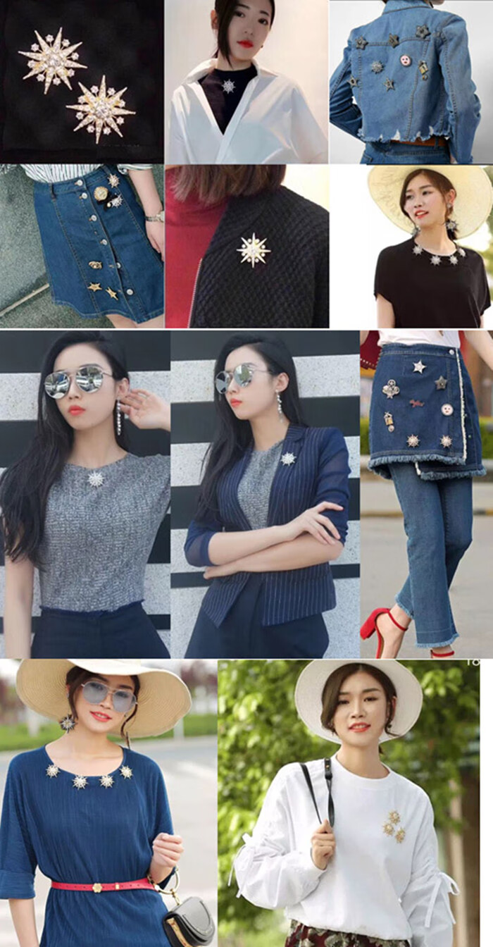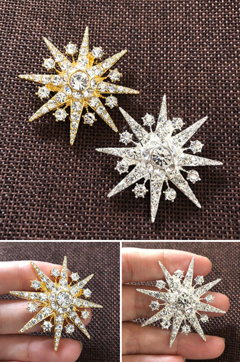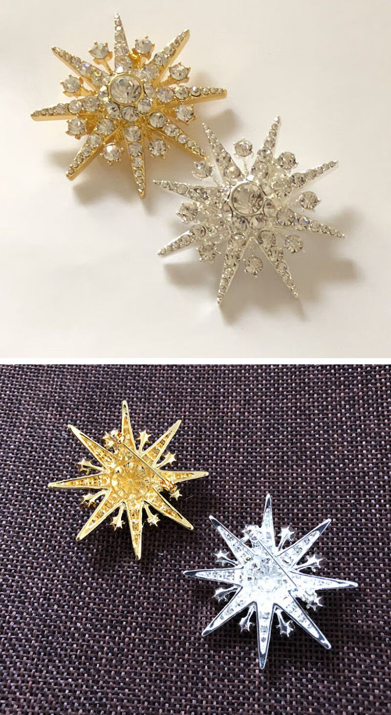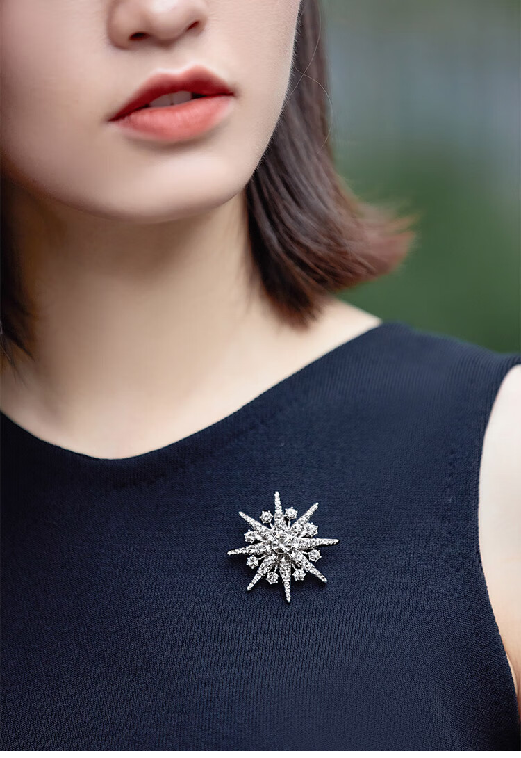 Youshu Amash 2024 new domestic purchasing jewelry pin accessories diamond snowflake brooch for women, one gold and one silver