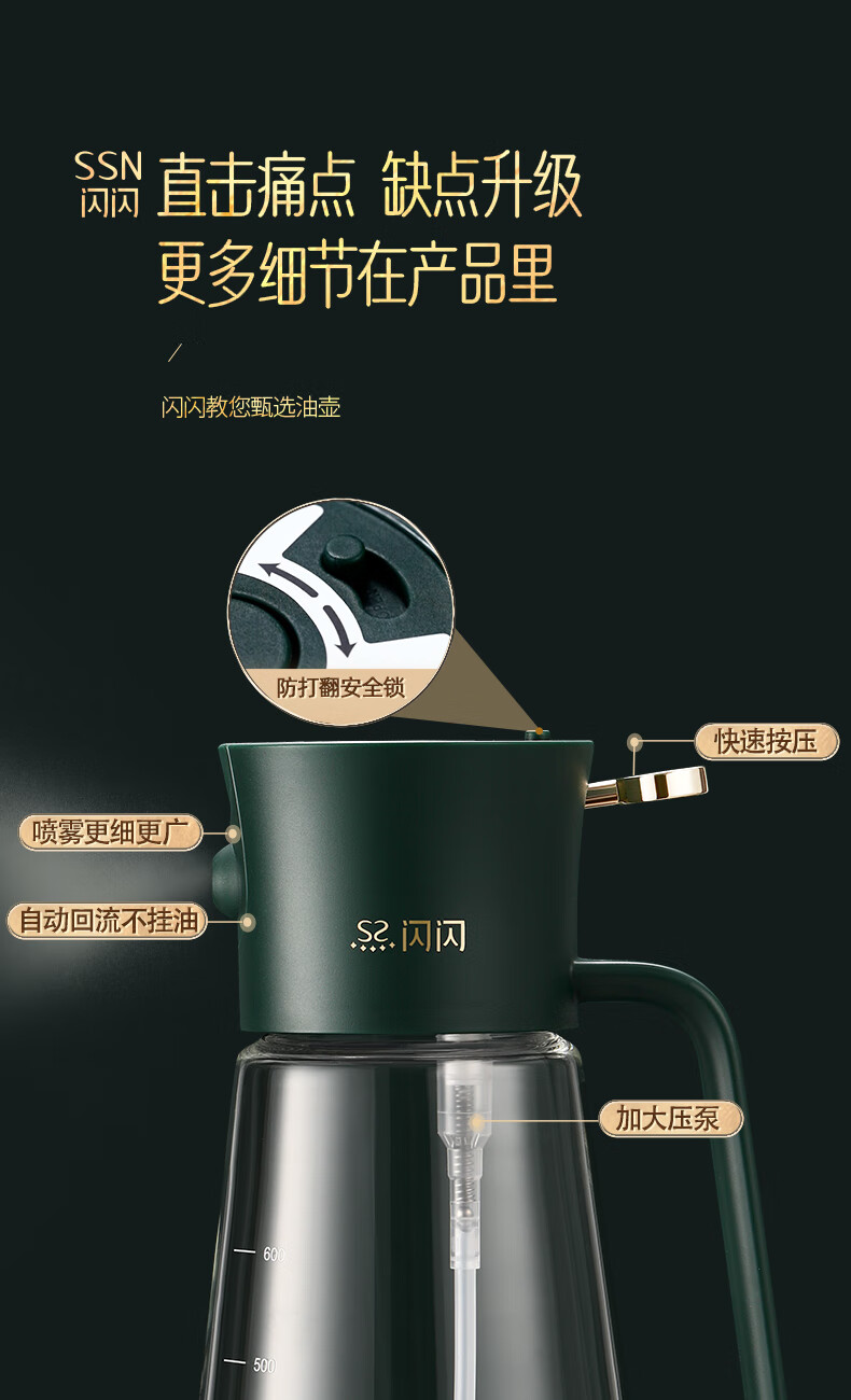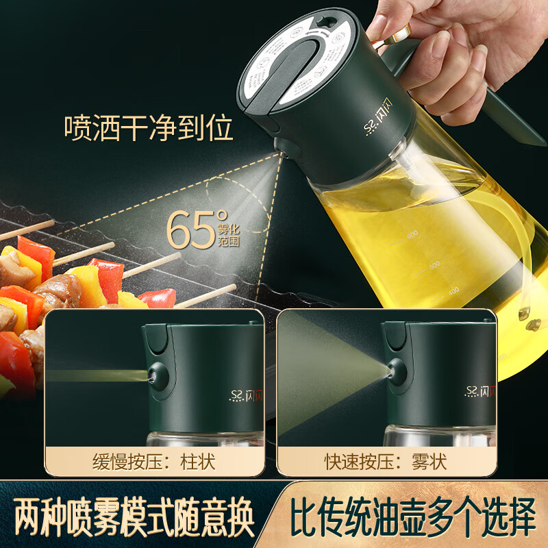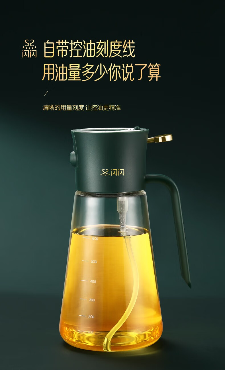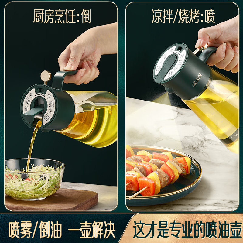 Sparkling high-quality oil bottle spray bottle atomized spray bottle kitchen spray pour oil spray all-in-one sauce vinegar oil bottle anti-leak spout without oil hanging green automatic opening cap when pouring oil 550ml