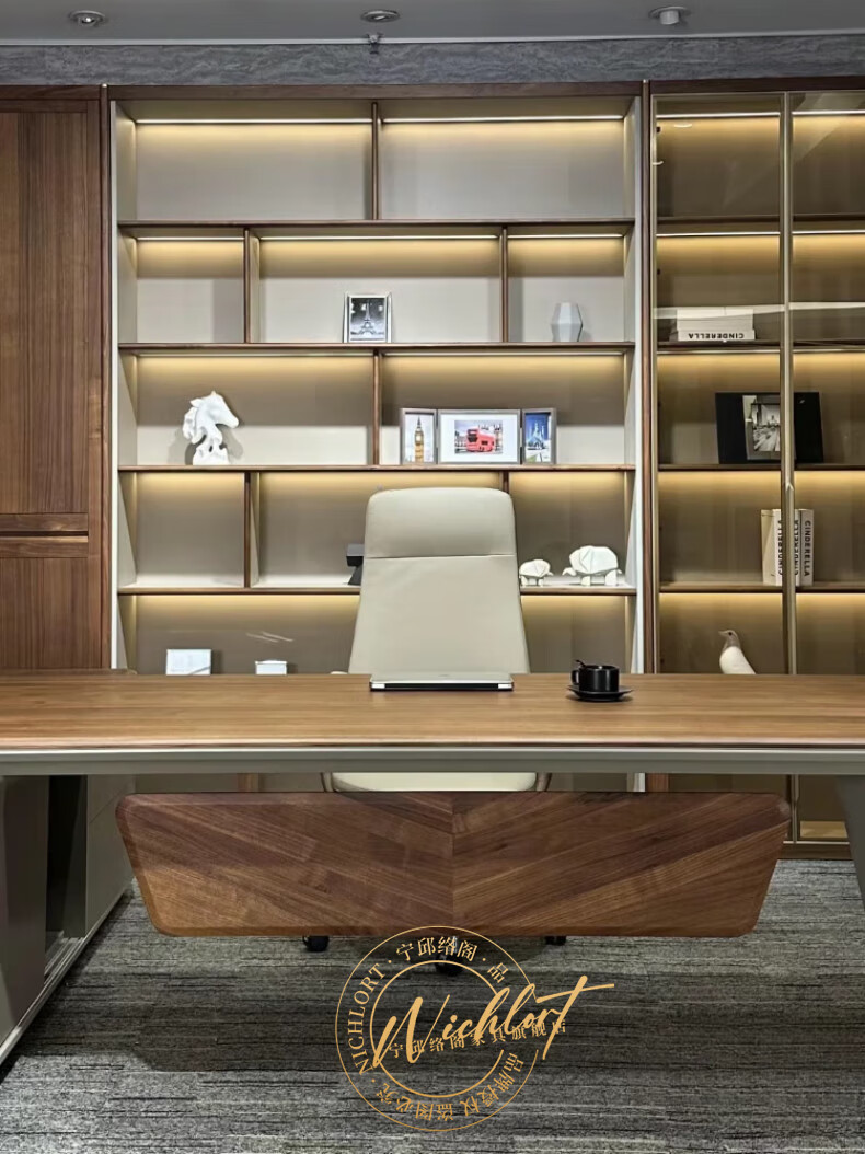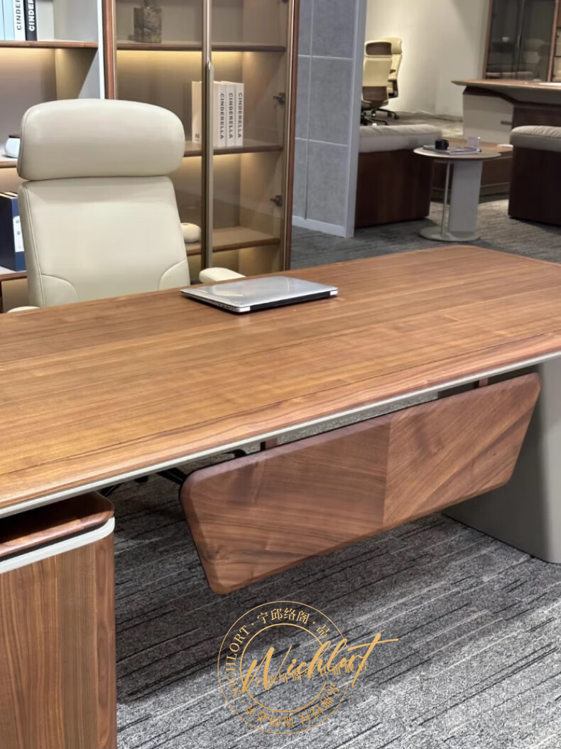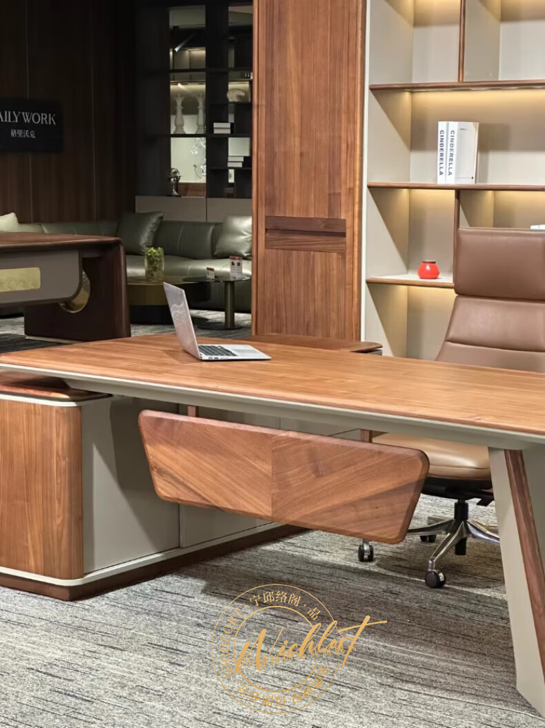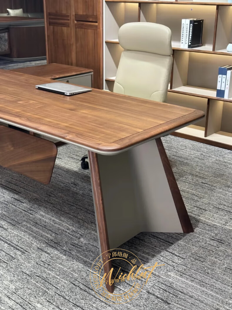 Ningqiu Luoge (NICHLORT) new Chinese style solid wood boss desk black walnut simple modern solid wood executive desk CEO desk custom desk 2.4 meters desk ash wood