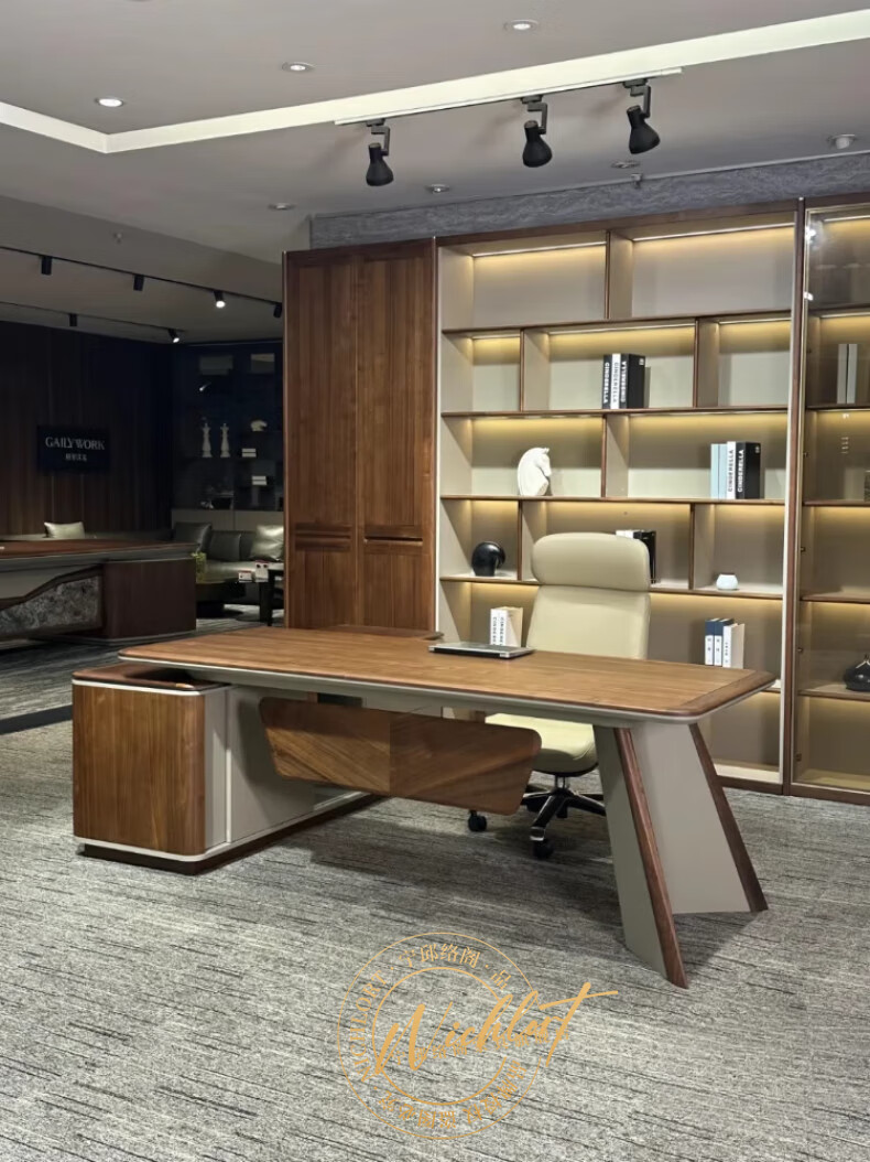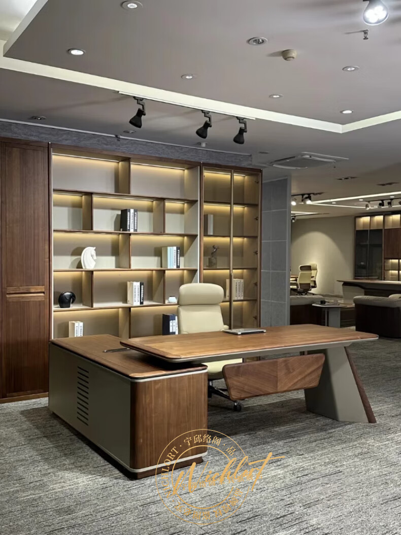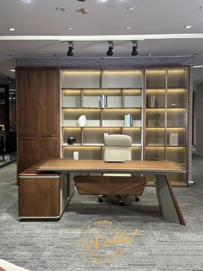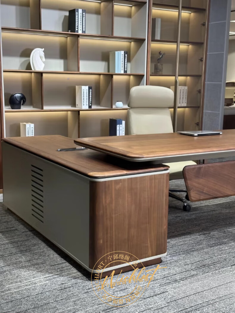 Ningqiu Luoge (NICHLORT) new Chinese style solid wood boss desk black walnut simple modern solid wood executive desk CEO desk custom desk 2.4 meters desk ash wood