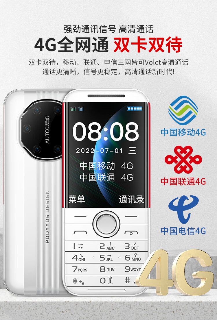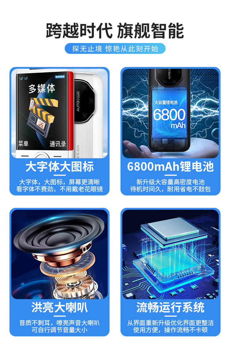 Huawei's minimalist new mobile phone for the elderly 4G fully networked mobile phone for the elderly with long standby time, mobile phone for the elderly with large screen, large characters and loud sound, white, Huawei Type-C charging port, official standard configuration